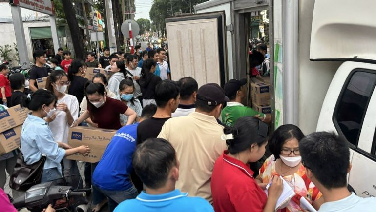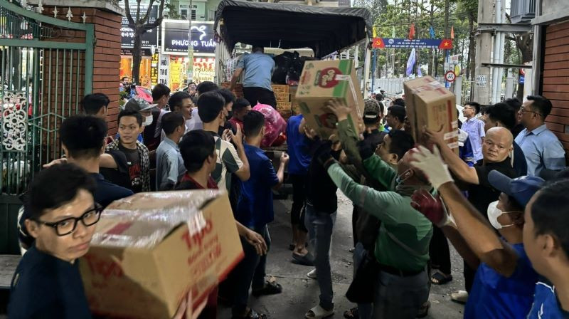 Lúc 18 giờ chiều 22/11, tại Hội Chữ thập đỏ Thành phố Hồ Chí Minh (cơ sở 2), phường Phú Lợi, Thành phố Hồ Chí Minh, đông đảo cán bộ Hội Chữ thập đỏ và các tình nguyện viên đã tập trung bốc xếp 20 tấn hàng hóa thiết yếu lên xe tải để vận chuyển đến hỗ trợ bà con bị ảnh hưởng bão lũ ở tỉnh Đắk Lắk.