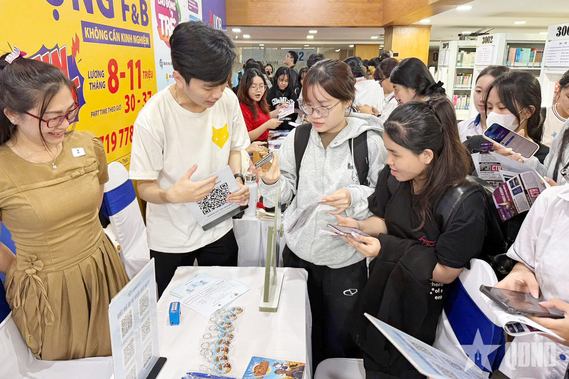 Đông đảo sinh viên tham gia tìm hiểu cơ hội việc làm trong ngày hội tại UEH.