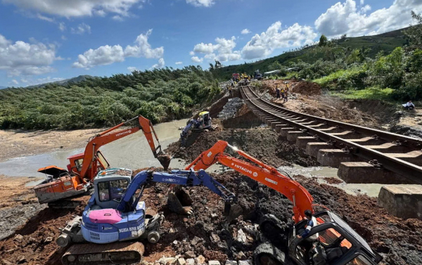 Ngành đường sắt huy động nhân lực, thiết bị kỹ thuật, cơ giới chuyên dụng đến hiện trường khắc phục sự cố sạt lở xuyên suốt 4 ngày đêm nên tuyến đường qua km 1136+850 đã thông tuyến.