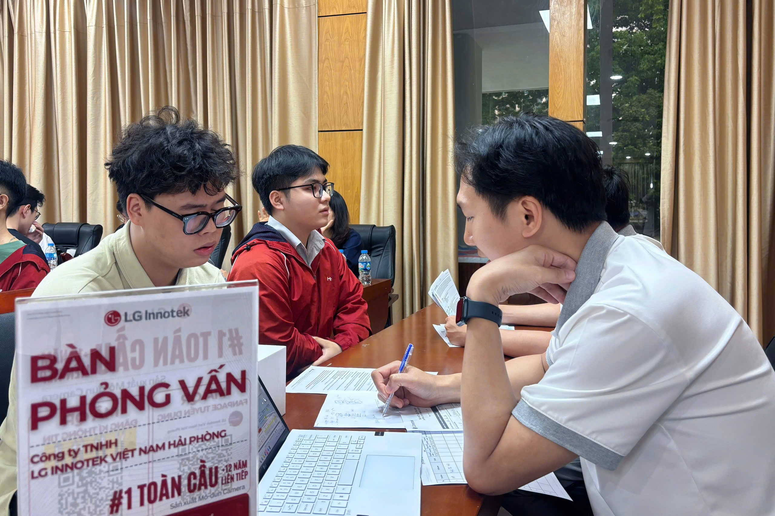 Nguyễn Quốc Khánh, sinh viên năm cuối ngành Tự động hóa, Trường Điện - Điện tử, Đại học Bách khoa Hà Nội tham gia ứng tuyển tại Ngày hội Hướng nghiệp và Việc làm - JOB FAIR 2026. Ảnh: Nguyễn Liên
