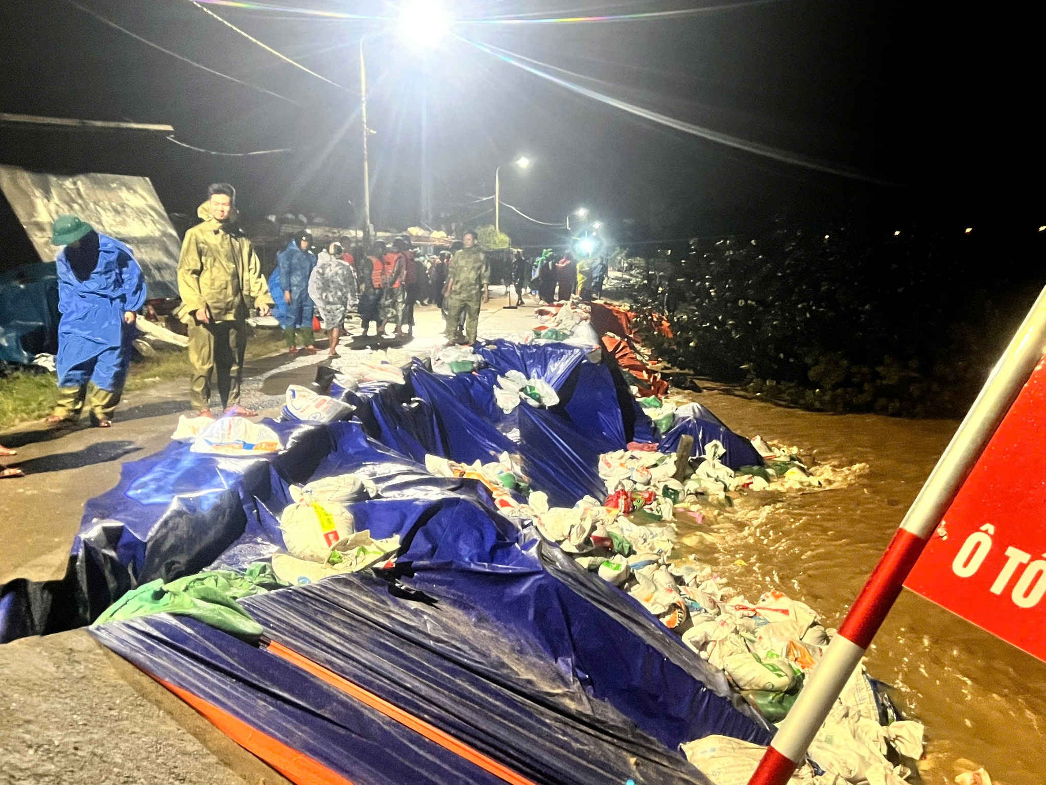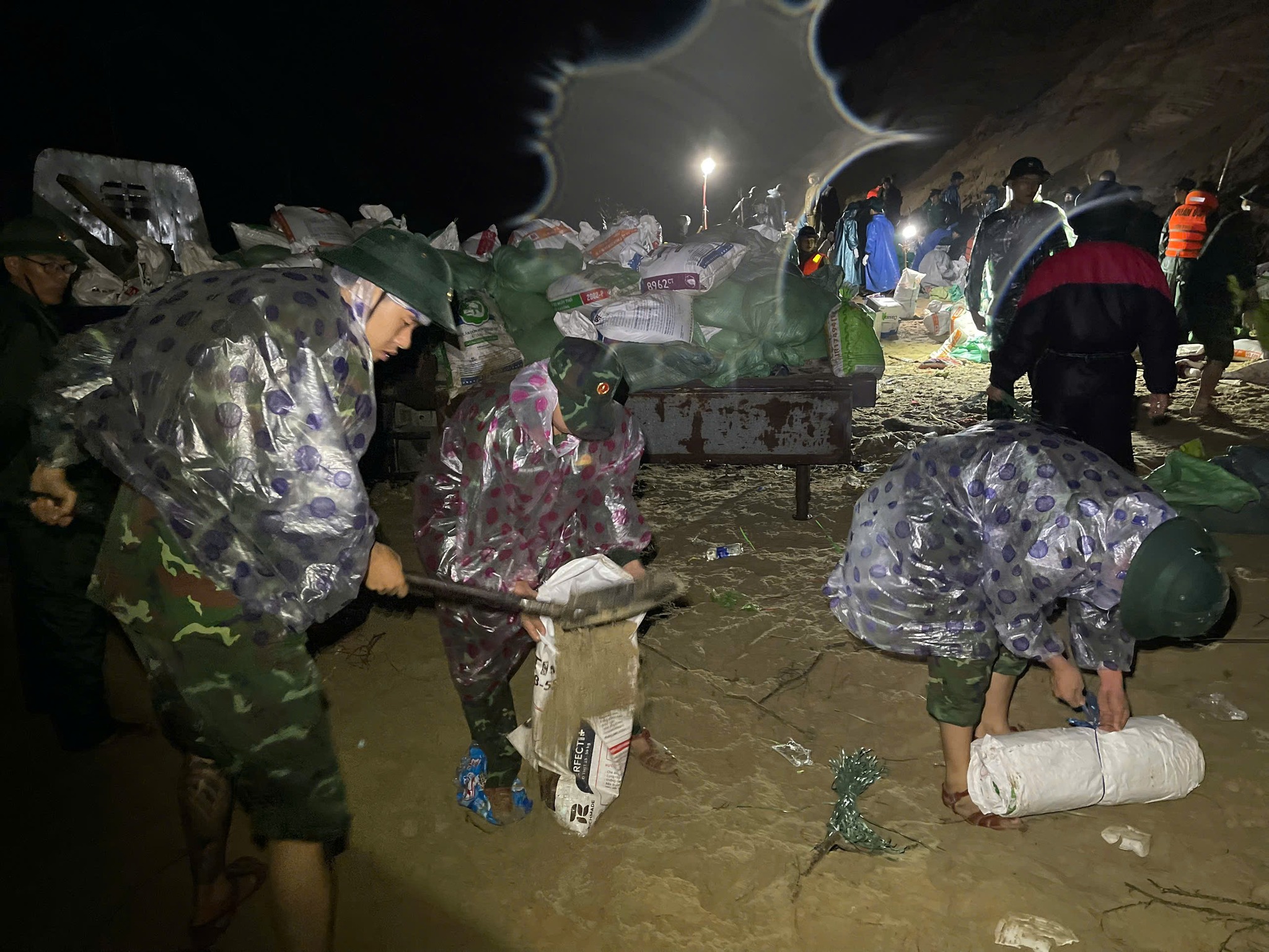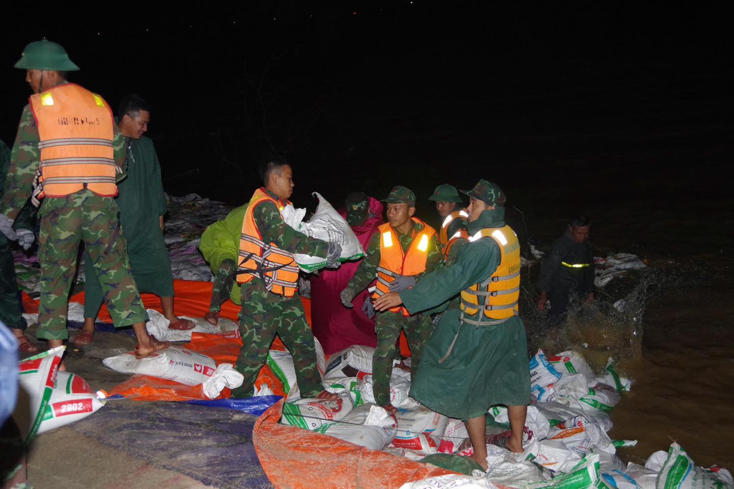 Hơn 500 cán bộ, chiến sĩ của Quân khu 5 cùng người dân địa phương "trắng đêm" gia cố bờ kè sạt lở