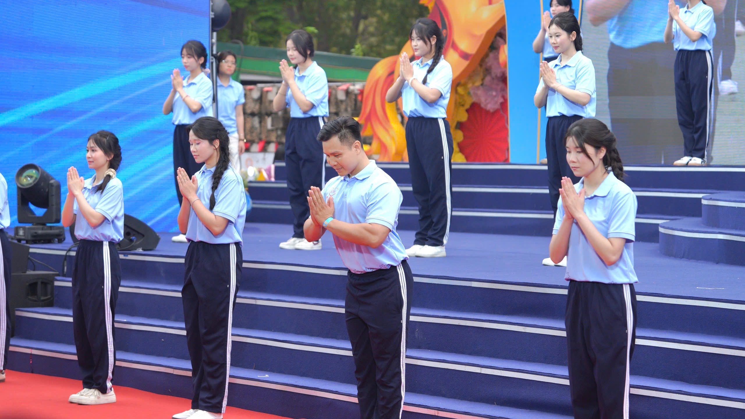 Nổi bật tại sự kiện là hơn 500 cán bộ y tế và sinh viên Học viện Y - Dược học cổ truyền Việt Nam đã cống hiến một màn đồng diễn dưỡng sinh quy mô lớn. Từng động tác nhịp nhàng, khỏe khoắn không chỉ đẹp mắt mà còn góp phần lan tỏa mạnh mẽ lối sống năng động, khuyến khích mỗi người dân tự giác rèn luyện để phòng chống các bệnh không lây nhiễm.
