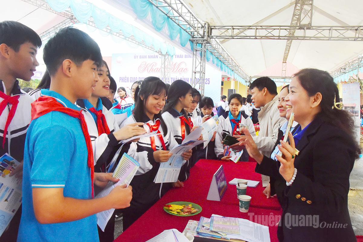 Các em học sinh được tư vấn, định hướng, lựa chọn ngành nghề phù hợp tại phiên giao dịch việc làm.