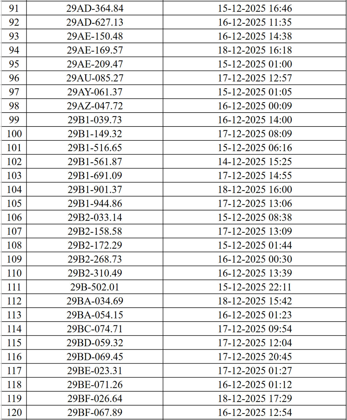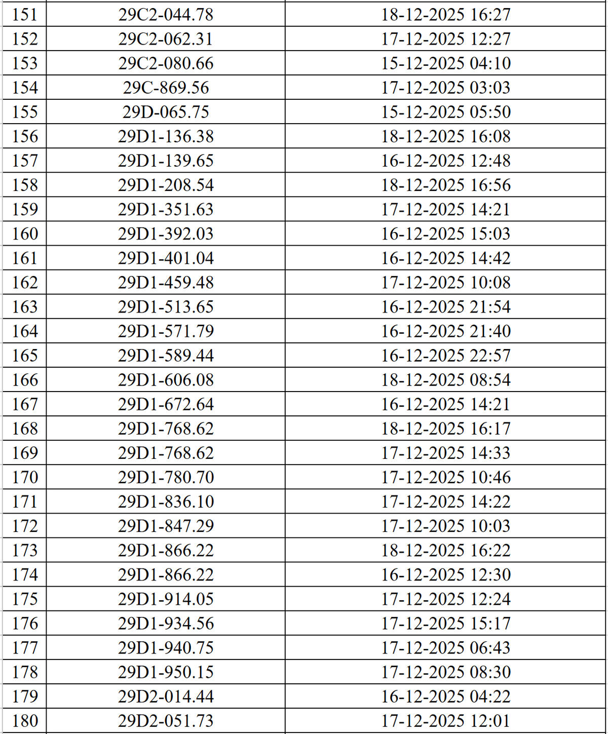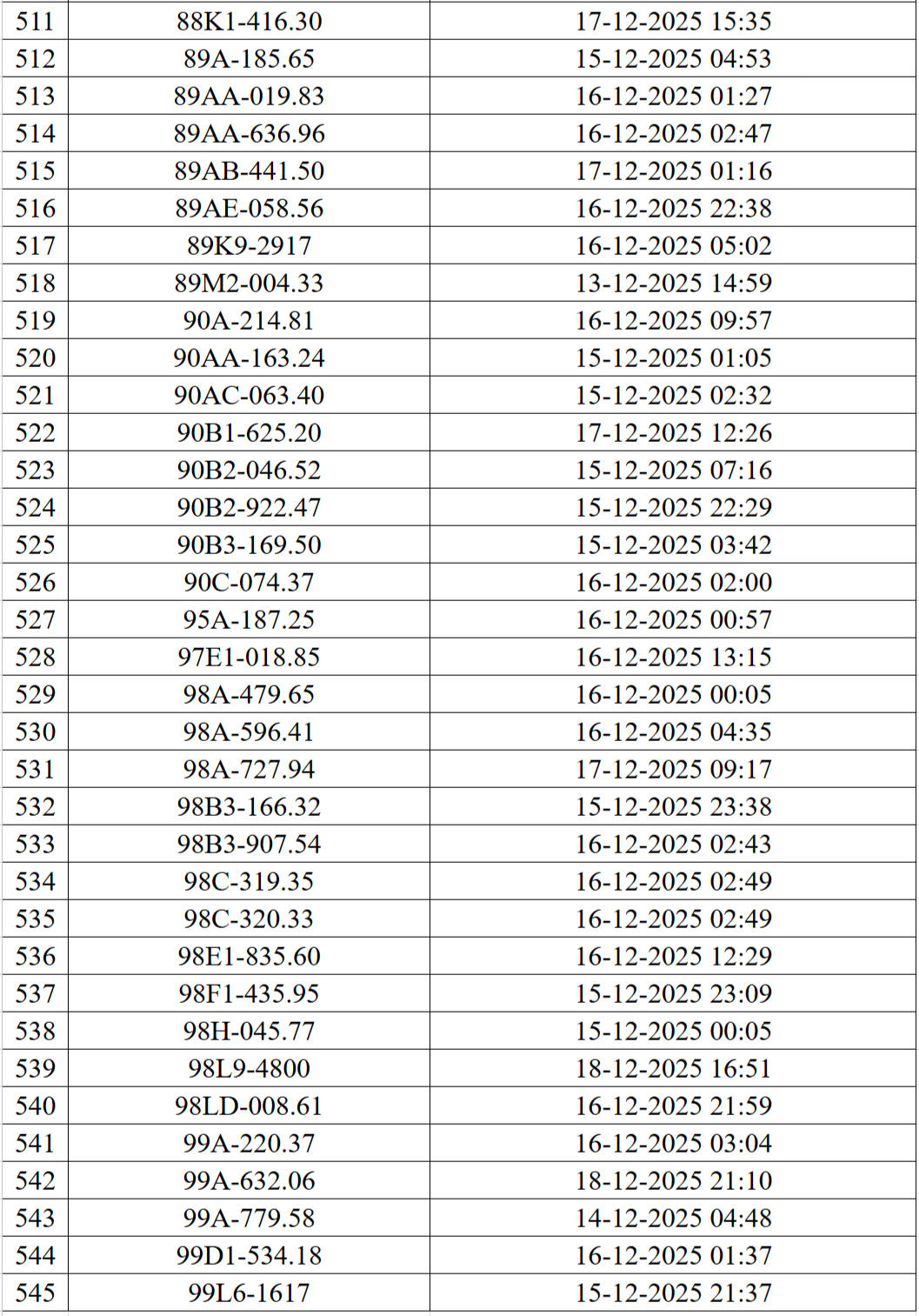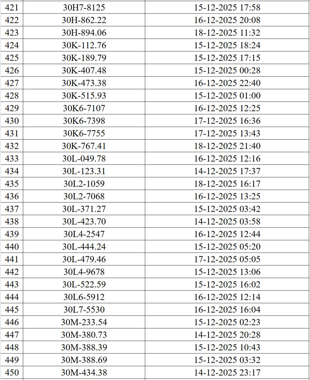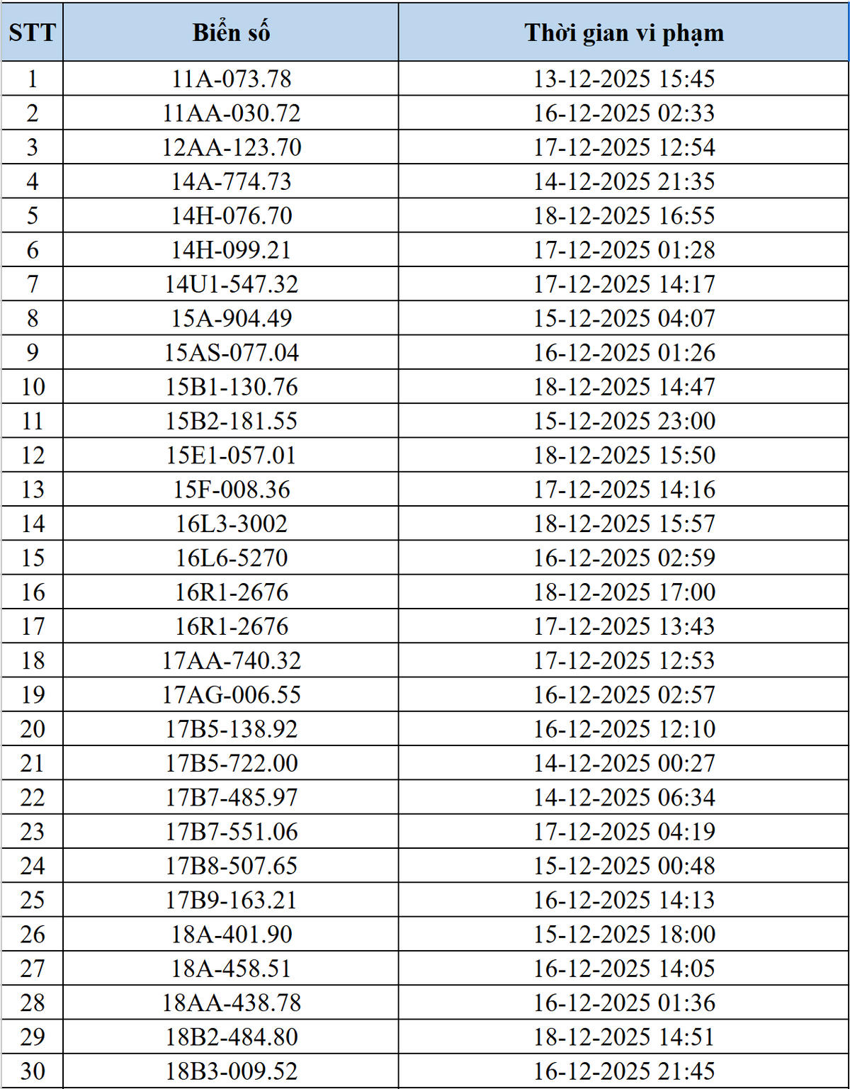 Danh sách phương tiện vi phạm bị Camera AI ghi hìnhL