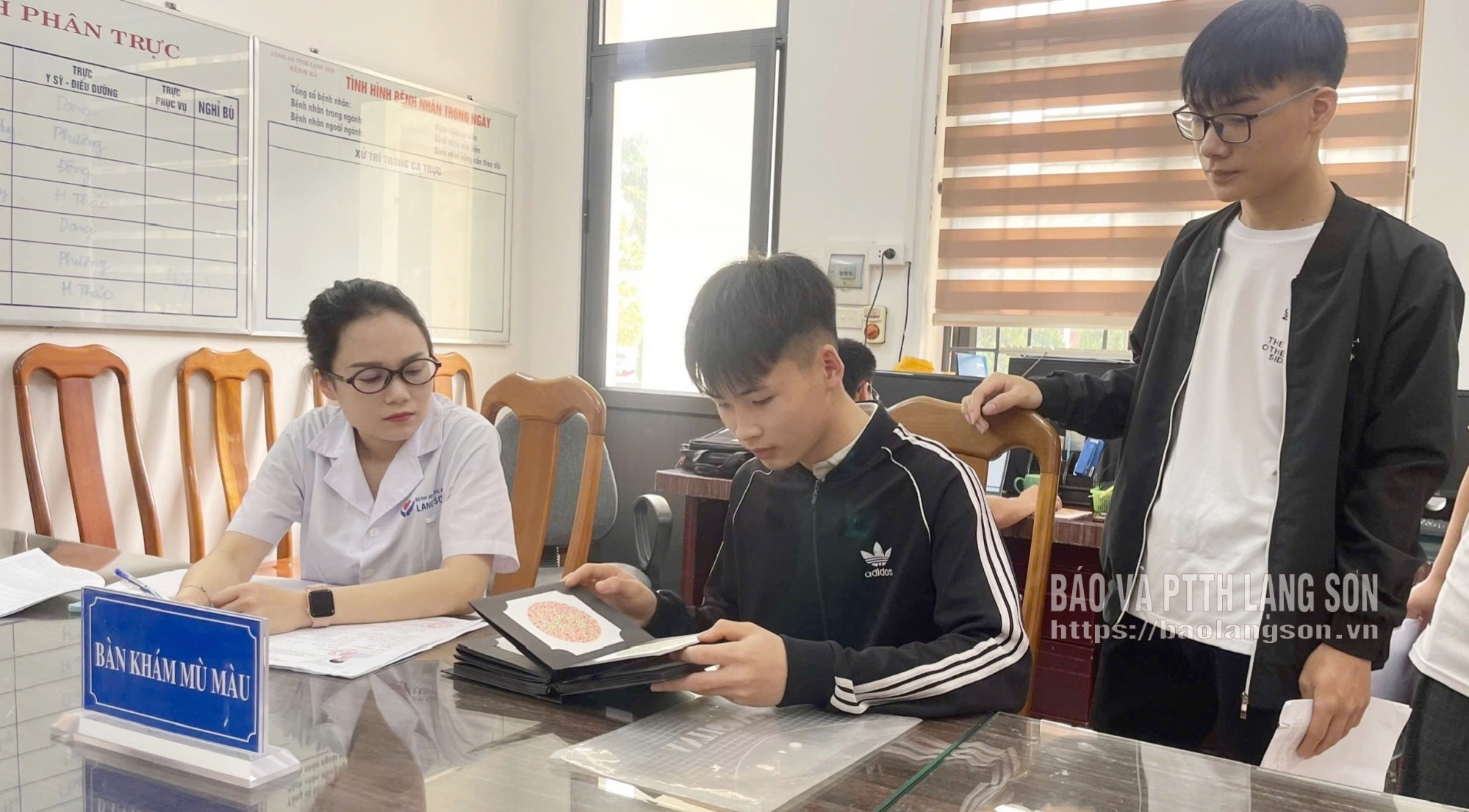 Cán bộ Bệnh xá Công an tỉnh khám thị lực thí sinh đăng ký dự tuyển vào các trường Công an nhân dân năm 2026