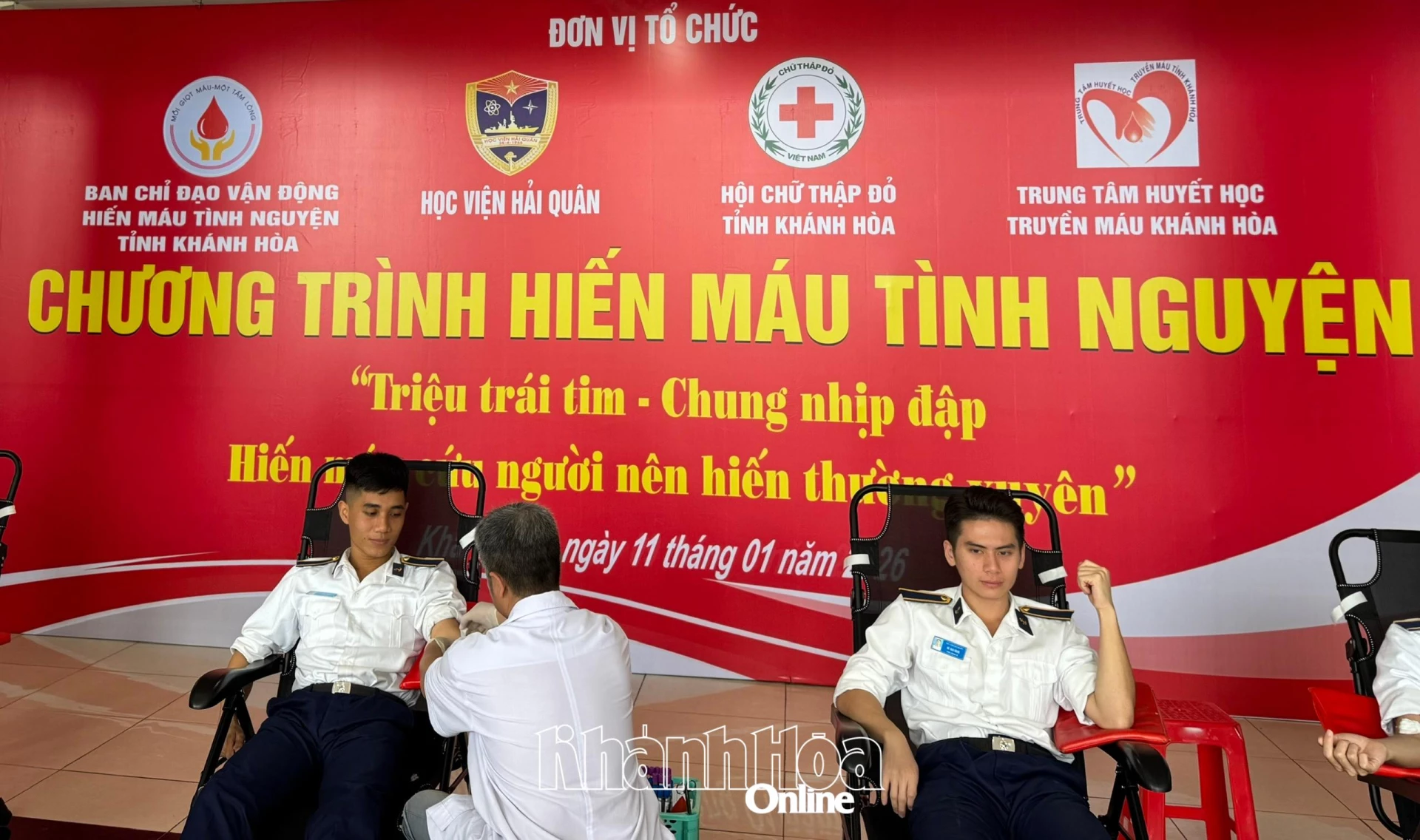 Ngày 11-1, Ban Chỉ đạo vận động hiến máu tình nguyện tỉnh Khánh Hòa phối hợp với Học viện Hải quân tổ chức chương trình hiến máu tình nguyện với chủ đề: “Triệu trái tim - chung nhịp đập, hiến máu cứu người nên hiến thường xuyên”.
