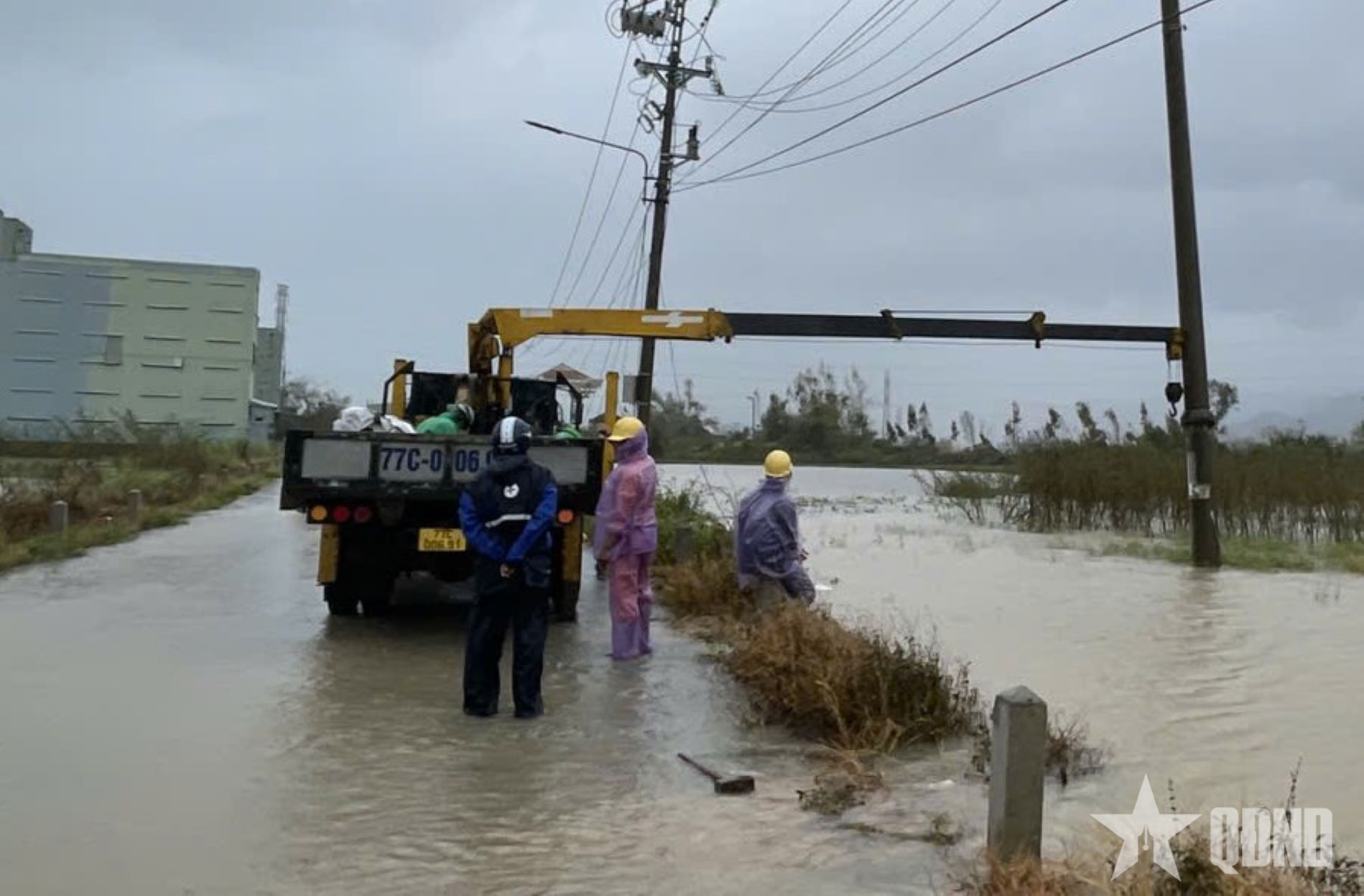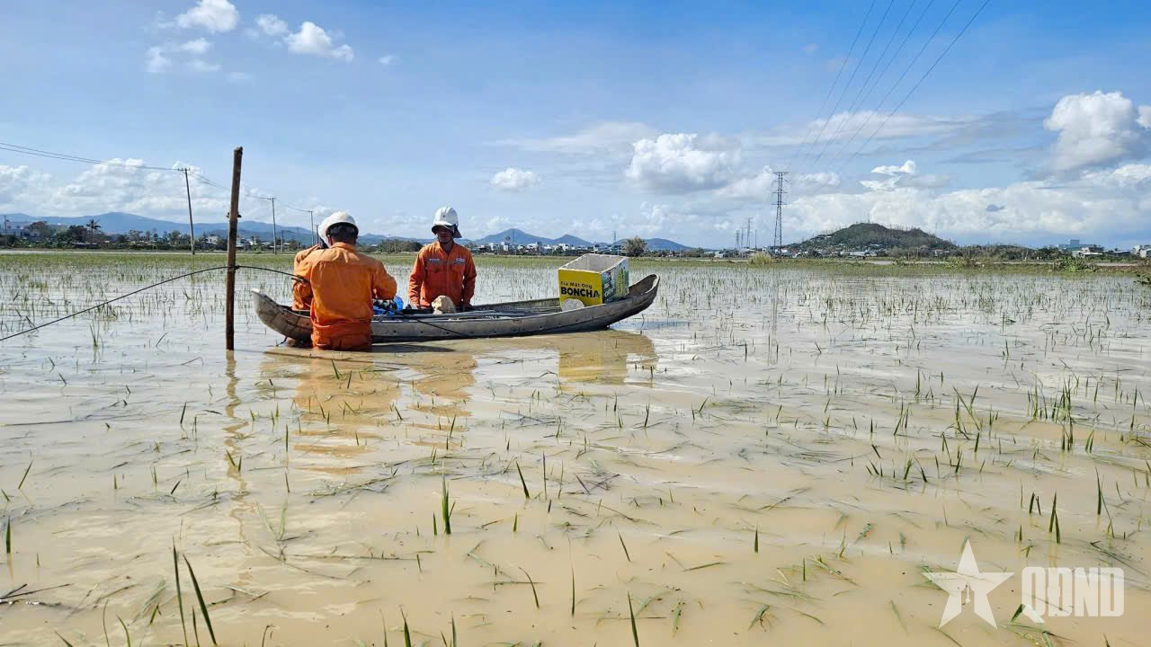 Nhân viên điện lực miền Trung kiểm tra, khắc phục lưới điện.