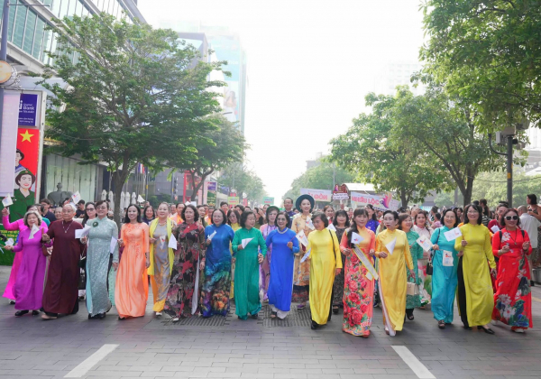 Đại sứ lễ hội áo dài TP Hồ Chí Minh lần thứ 12 tham gia đồng diễn áo dài và các hoạt động kỷ niệm ngày 8/3.