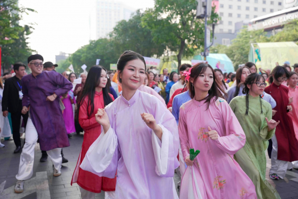 Chương trình đồng diễn áo dài với sự tham gia hàng ngàn người tại phố đi bộ Nguyễn Huệ là một trong những hoạt động đặc sắc của Lễ hội áo dài TP Hồ Chí Minh năm 2026.