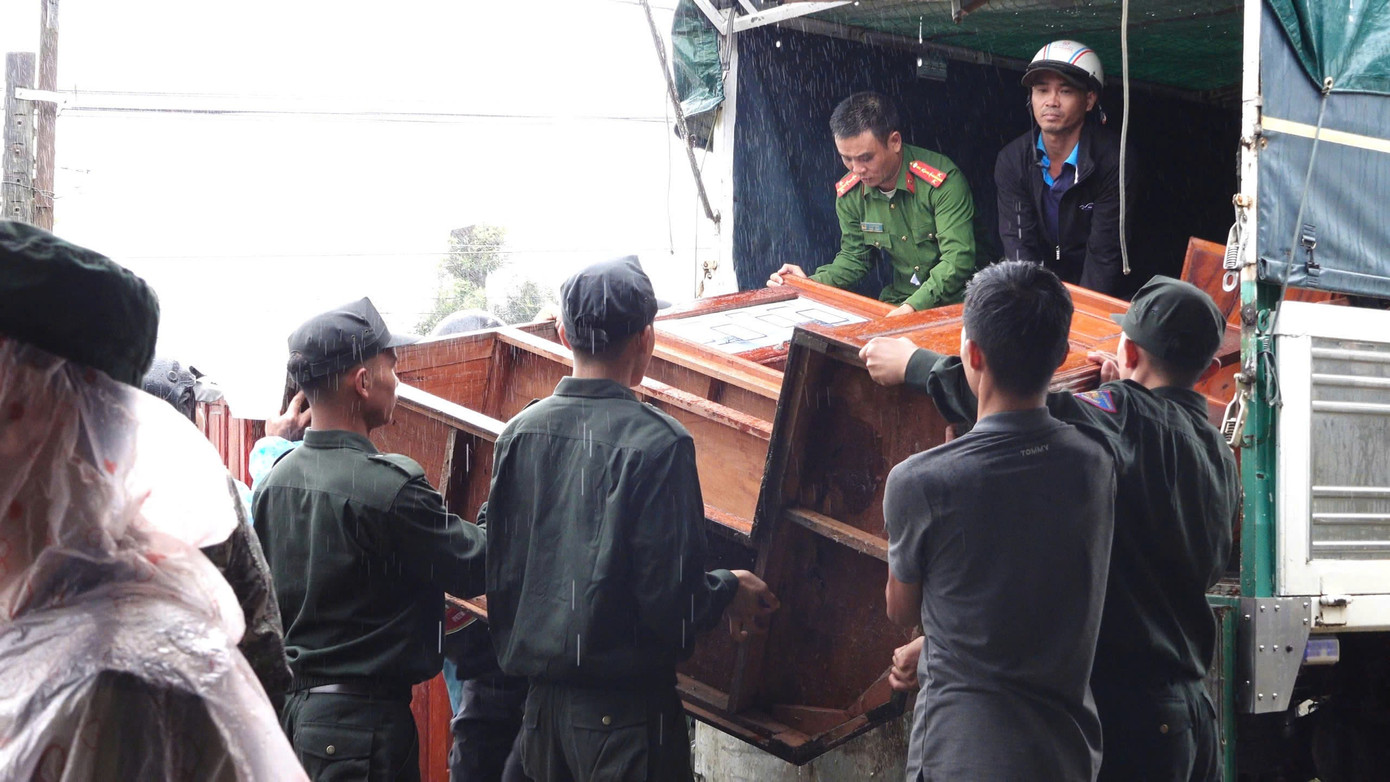 Công an tỉnh Lâm Đồng hỗ trợ di dời tài sản.
