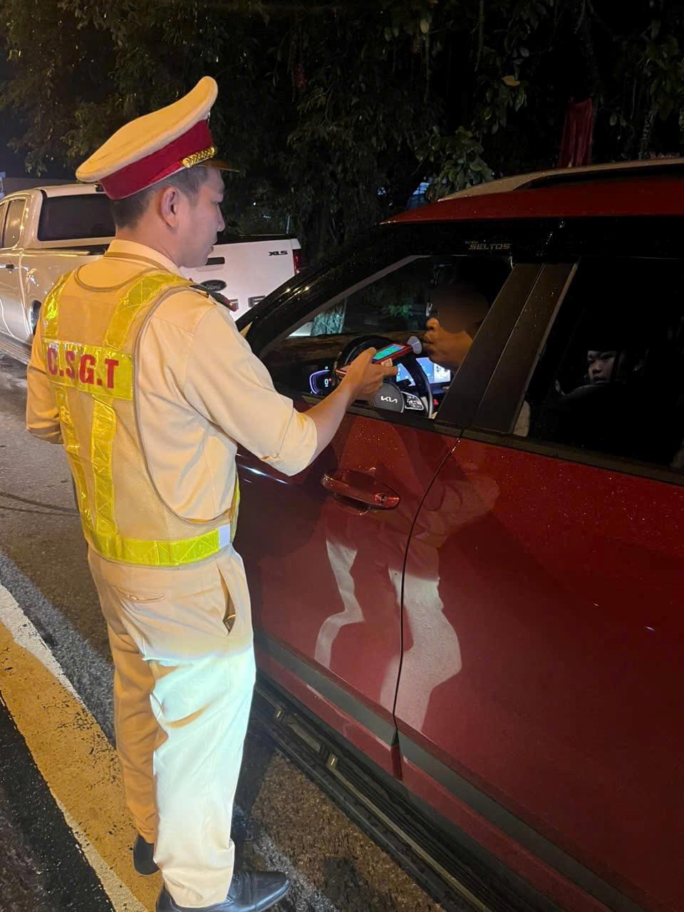 Lực lượng CSGT tiến hành kiểm tra nồng độ cồn.