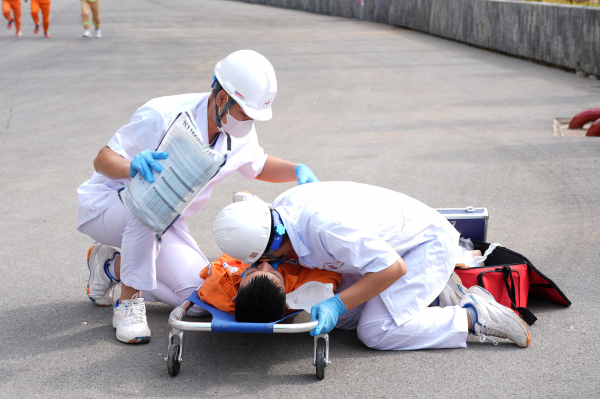 Lực lượng y tế tham gia hỗ trợ sơ cứu người bị nạn.