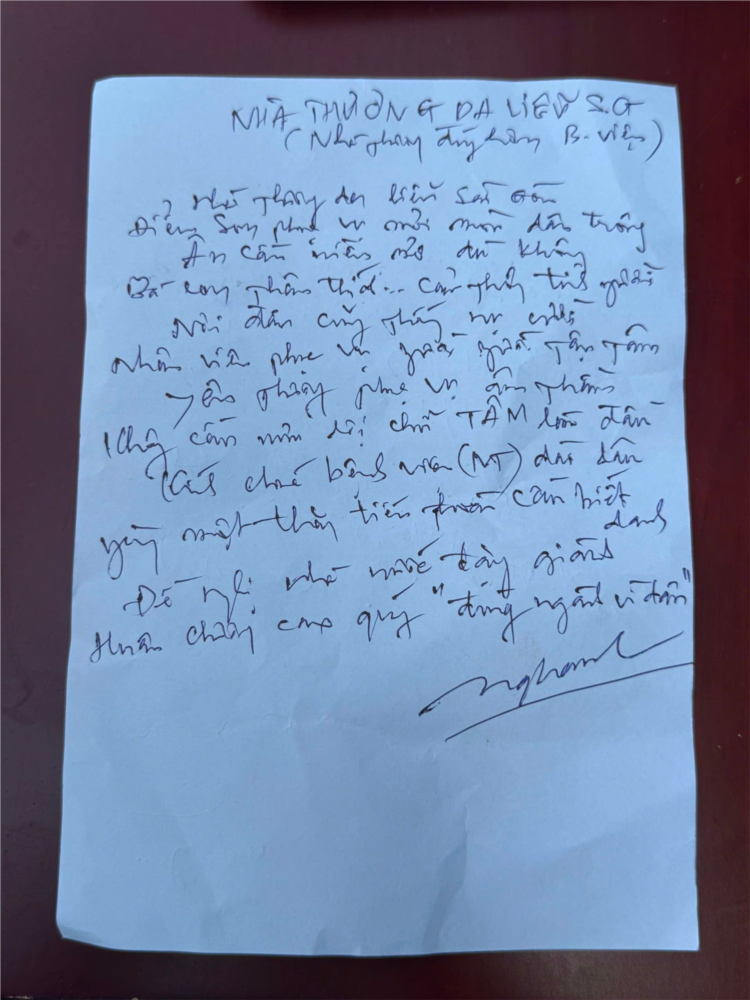 Một bài thơ viết tay tặng cho các bác sĩ tại điểm khám ở Củ Chi do Bệnh viện Da Liễu TP.HCM thực hiện. Ảnh: SYT