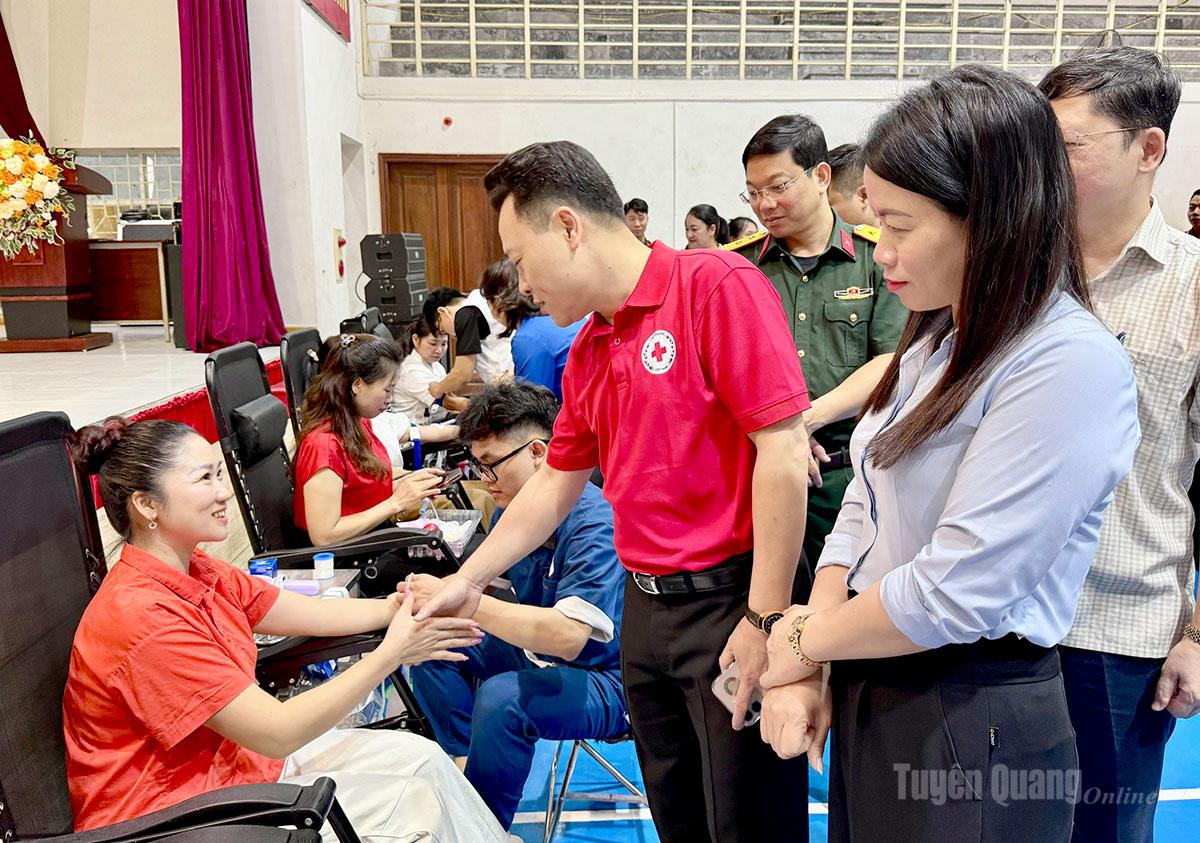 Lãnh đạo Hội Chữ thập đỏ tỉnh thăm hỏi cán bộ, nhân viên và sinh viên tham gia Ngày hội hiến máu.
