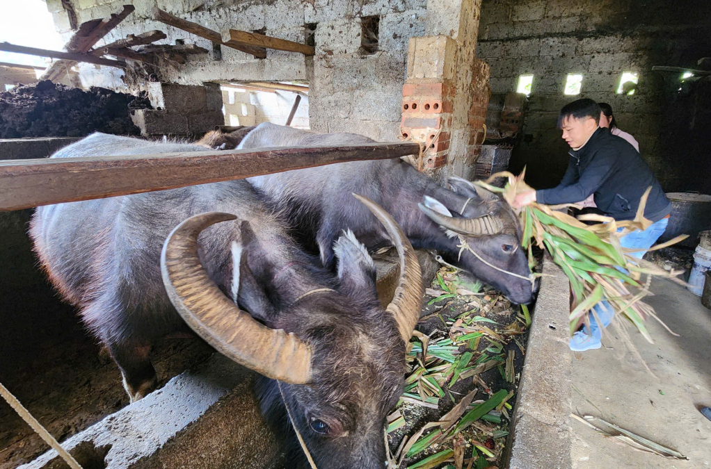 Người dân xã Hà Quảng đưa gia súc ra khỏi gầm sàn nhà ở và phòng, chống rét cho vật nuôi.