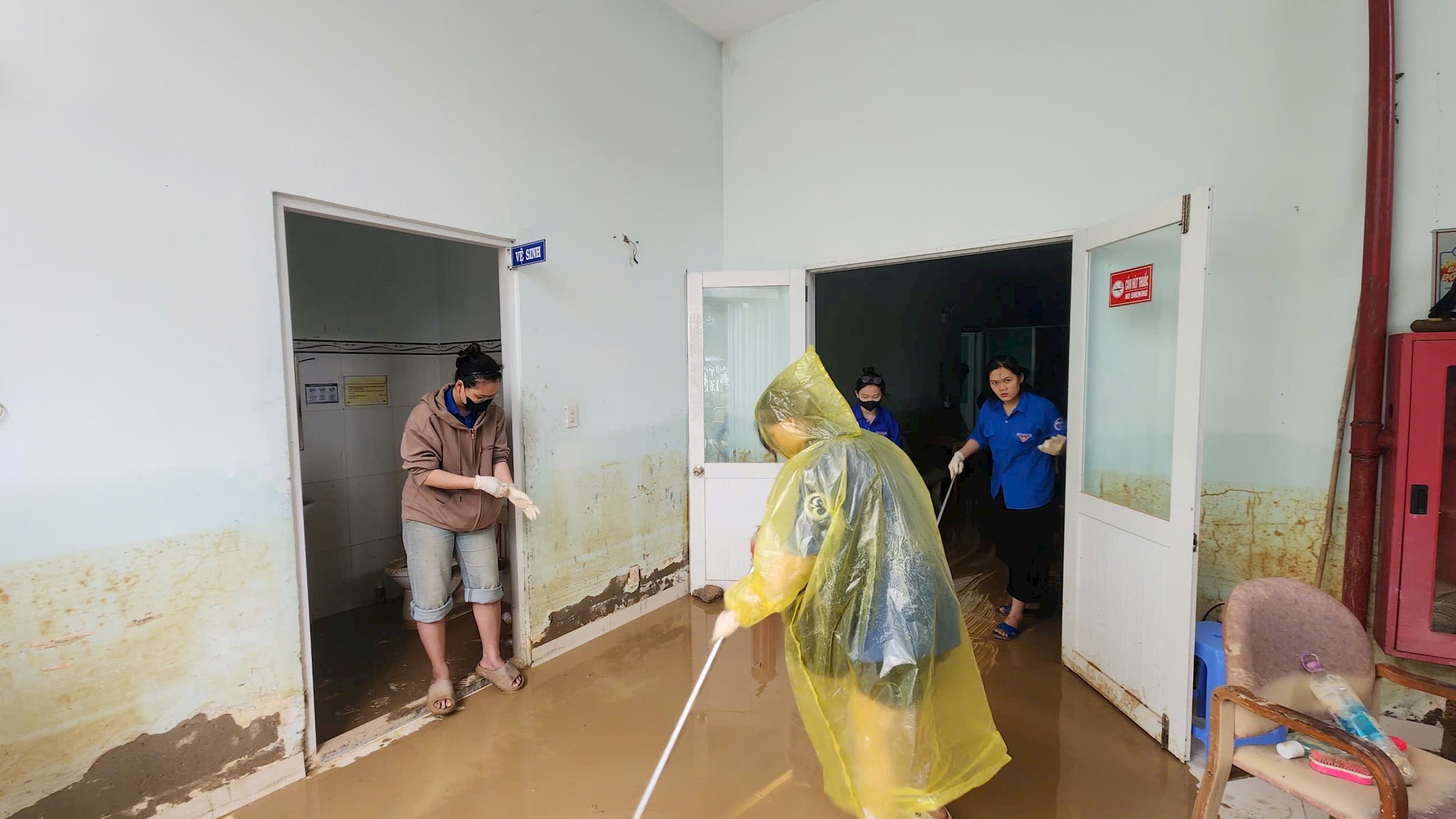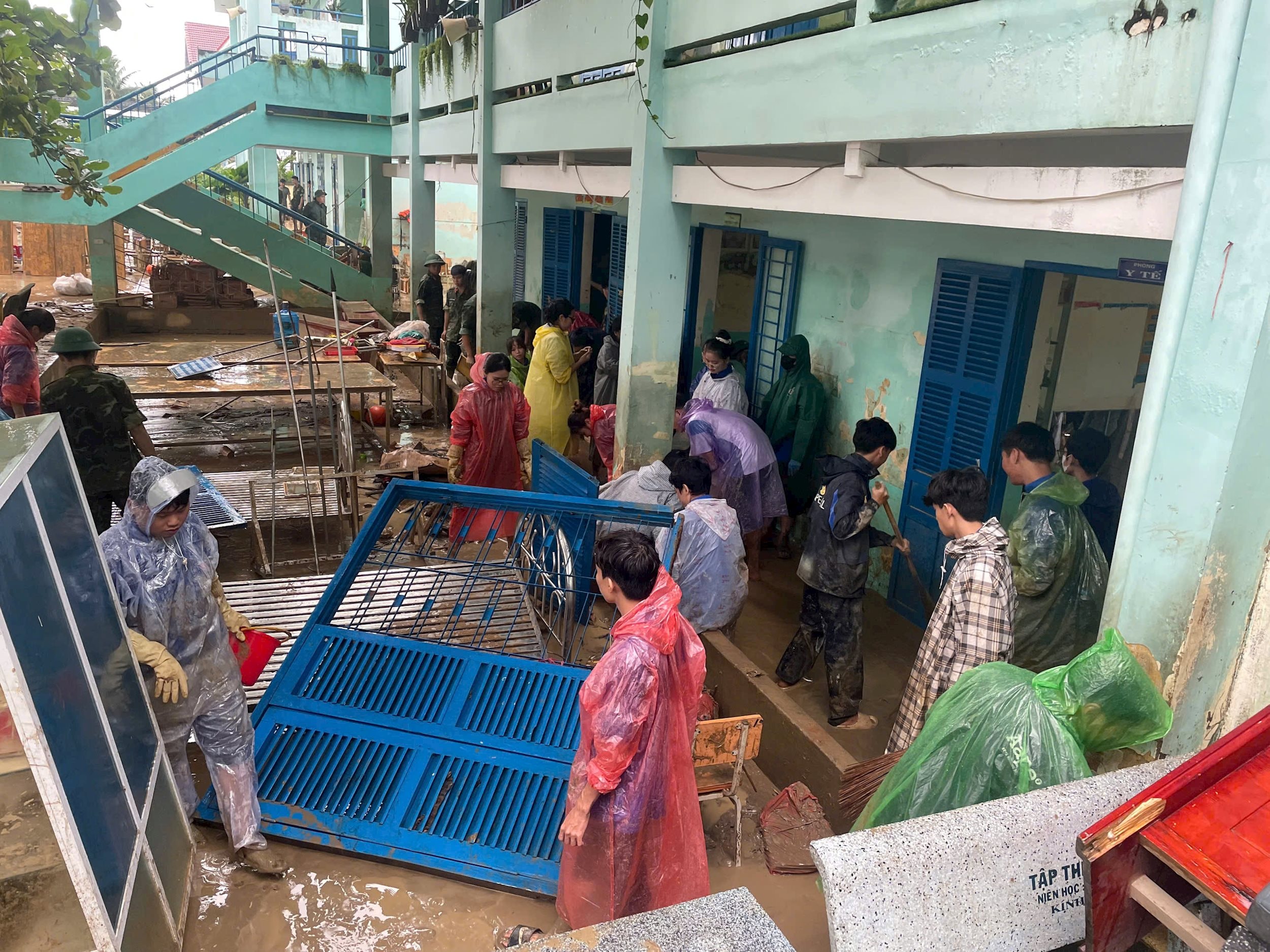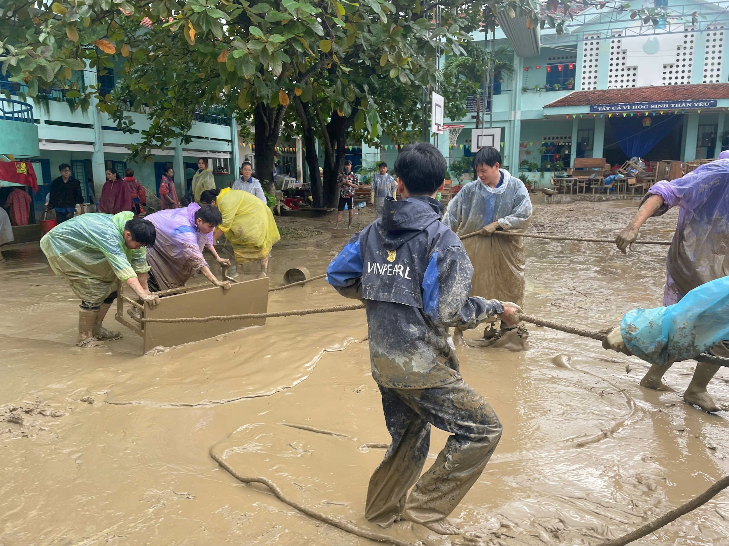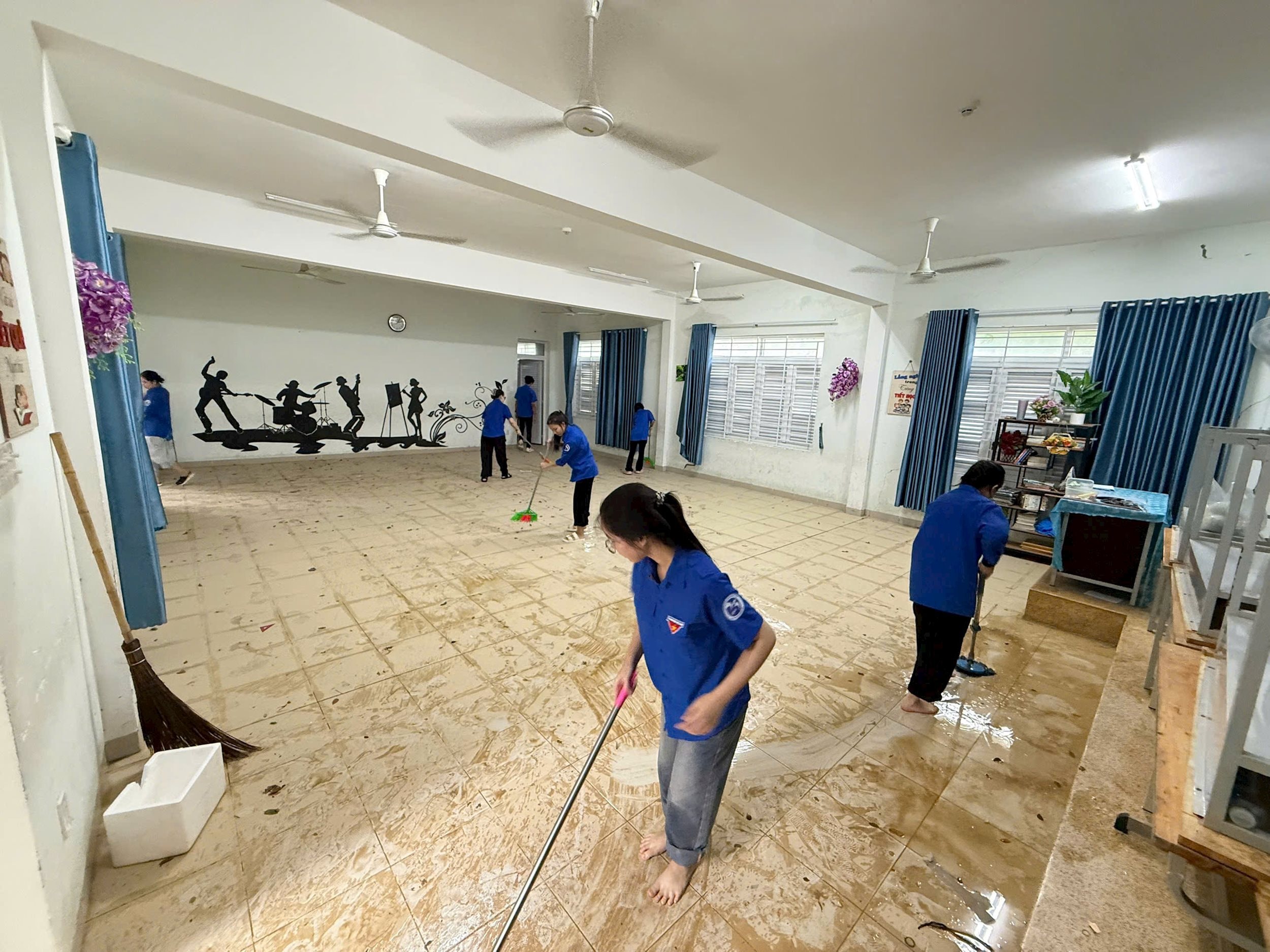 Thực tế tại các địa phương, hoạt động tình nguyện không chỉ dừng lại ở việc làm sạch đường phố hay khơi thông hệ thống thoát nước. Những đội hình thanh niên xung kích còn có mặt tại các trường học, dọn dẹp phòng học, lau sạch bàn ghế, sắp xếp lại sách vở để thầy trò có thể sớm trở lại trường.