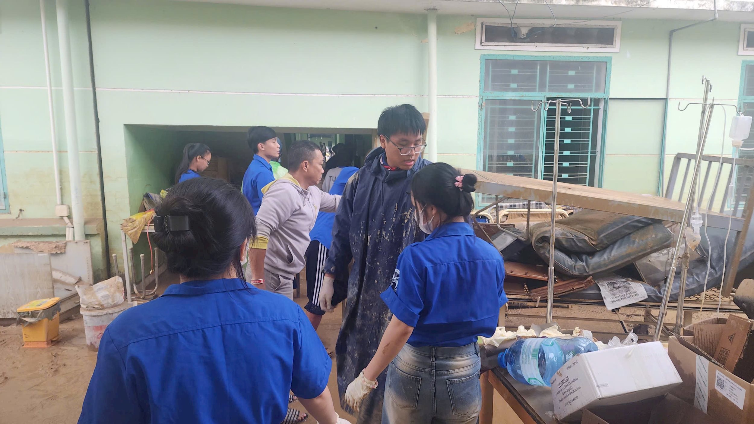 Ngay từ sáng sớm 23/11, các đội hình thanh niên đã nhanh chóng có mặt tại những điểm bị ảnh hưởng nặng nề: trường học ngập bùn, nhà dân còn ngổn ngang vật liệu hư hỏng, những đoạn đường bị tràn rác thải và bùn đất. Dù trời âm u và đường trơn trượt, nhưng tiếng cười, tiếng hô khẩu hiệu và tinh thần hăng hái của tuổi trẻ đã xua tan mọi mệt mỏi.