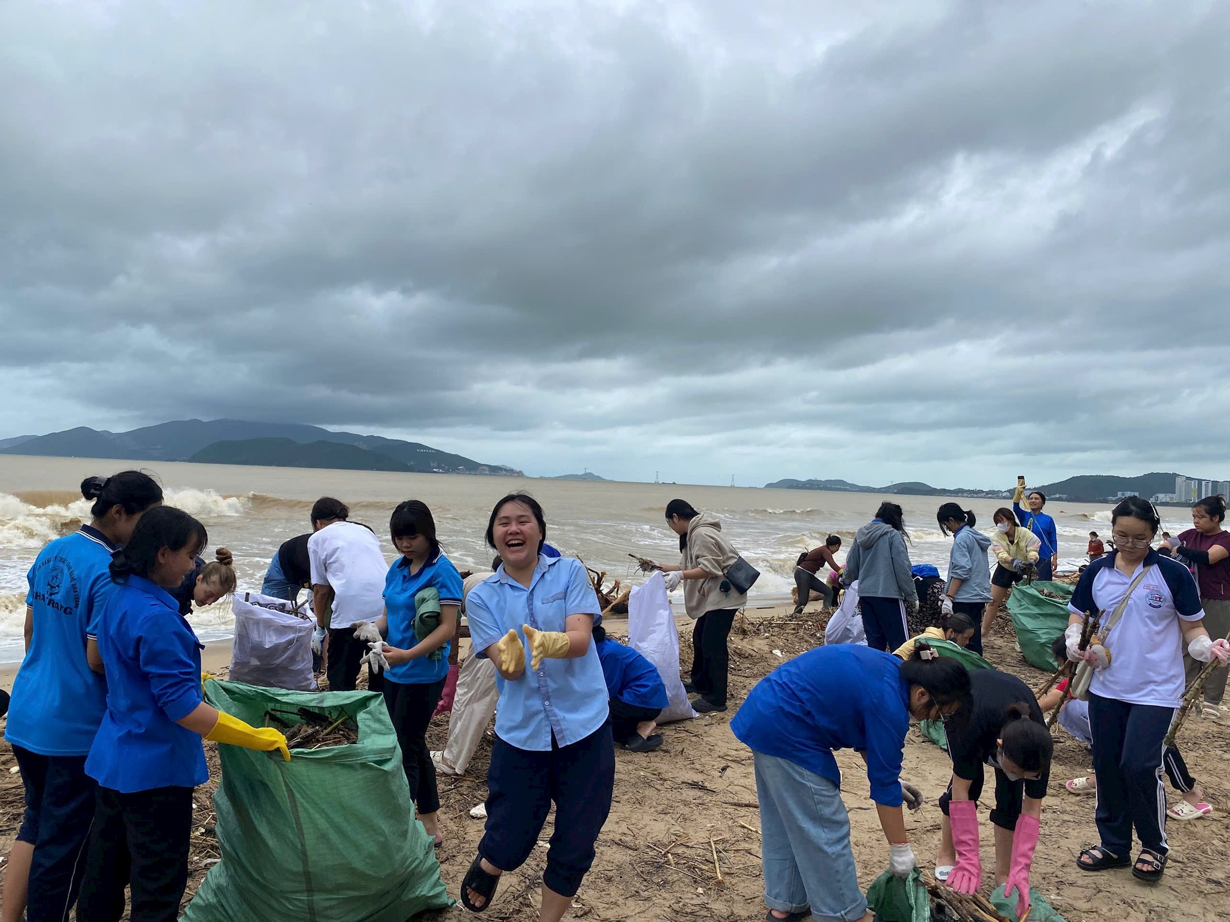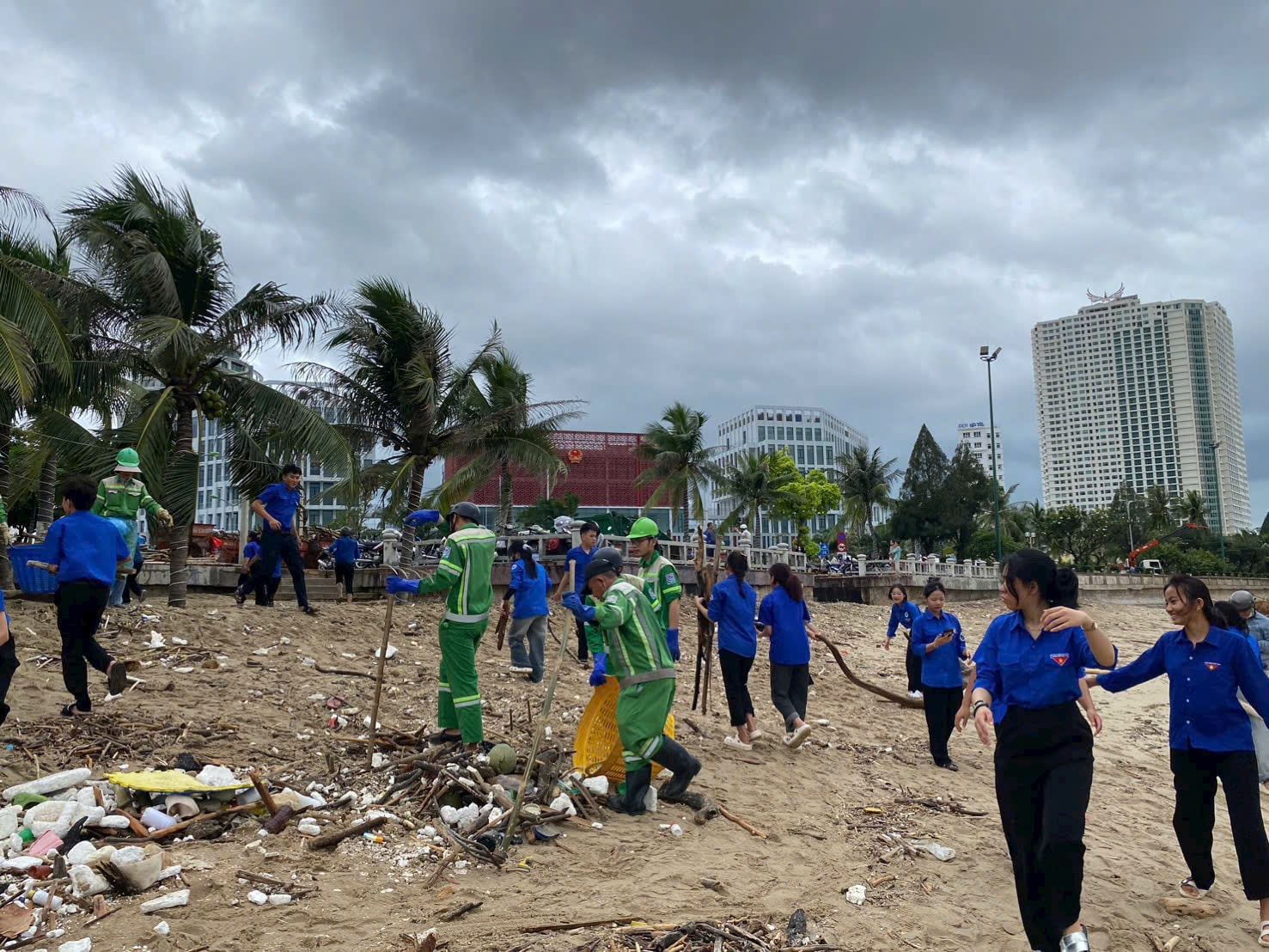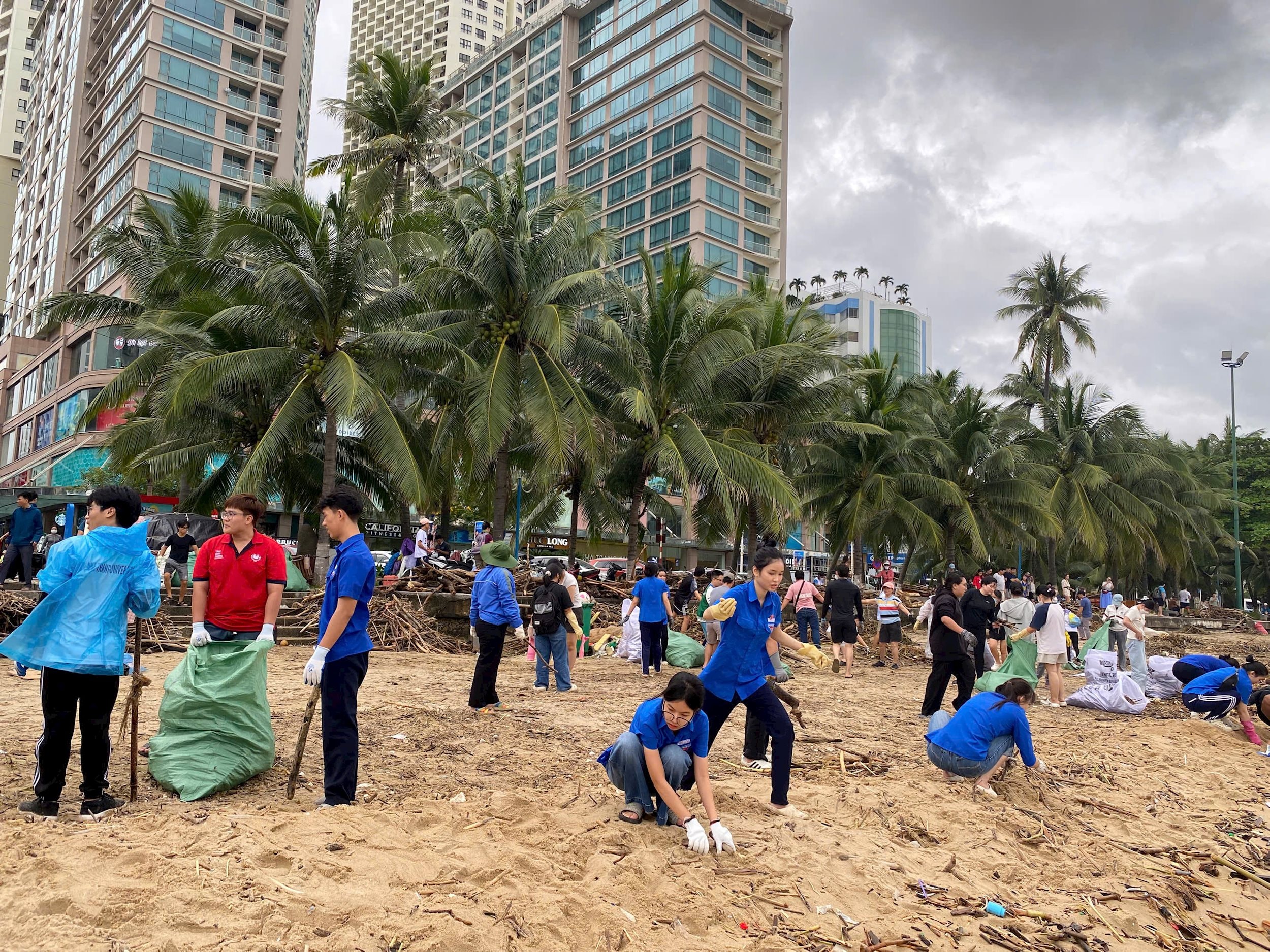 Thanh niên xung kích ra quân làm sạch bãi biển Trần Phú.