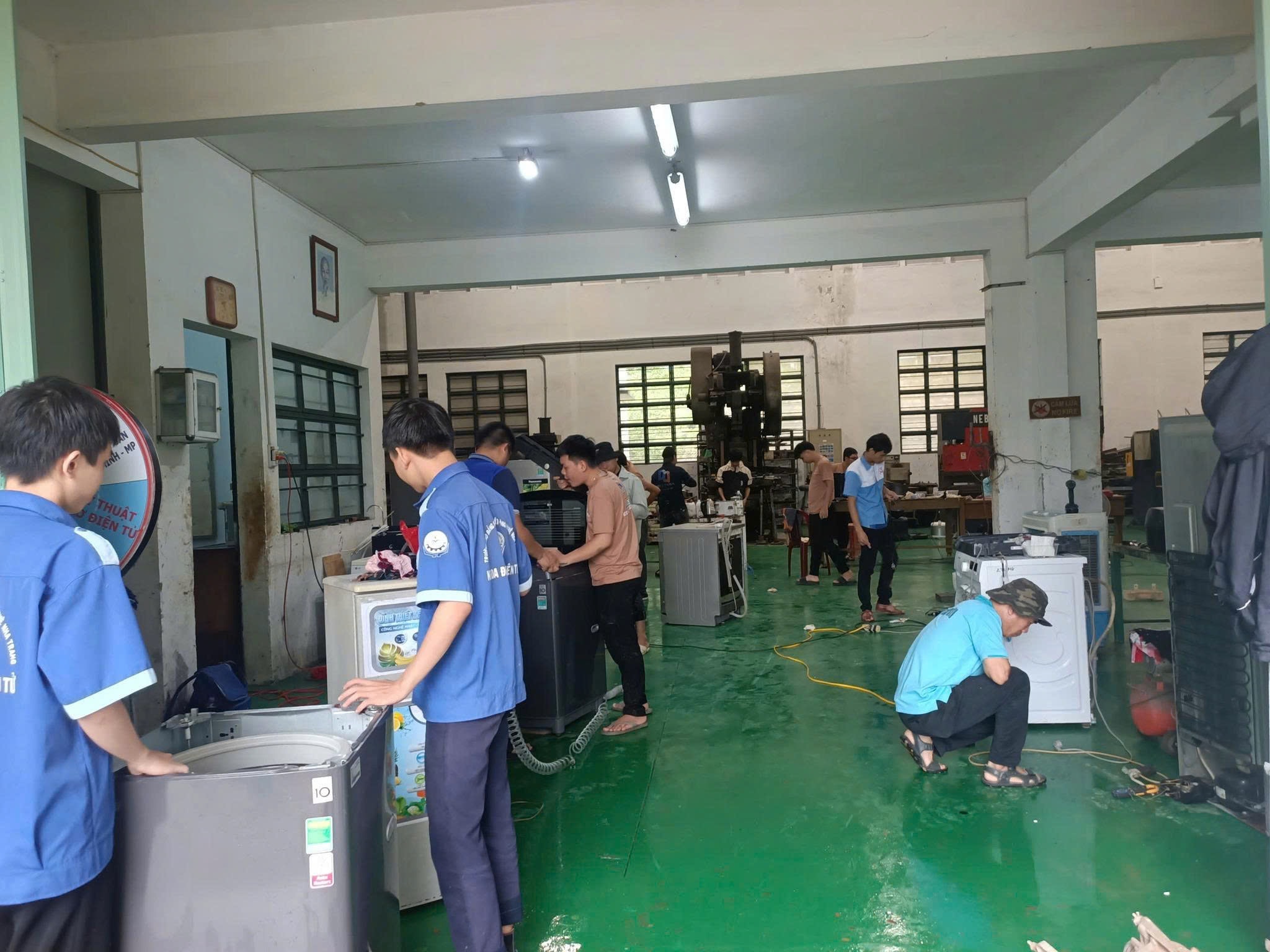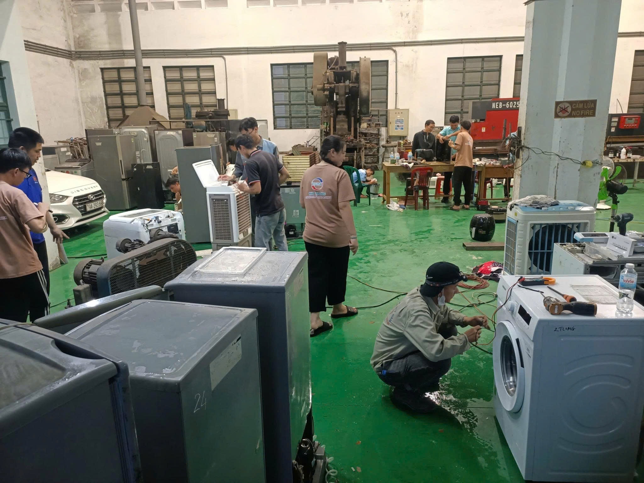Đoàn viên, SV Khoa Cơ Khí, Trường ĐH Nha Trang cùng các GV trong Khoa và các Kỹ thuật viên tiếp nhận sửa chữa khoảng 140 thiết bị gia dụng (tủ lạnh, máy giặt, ...) của người dân bị hư hỏng.