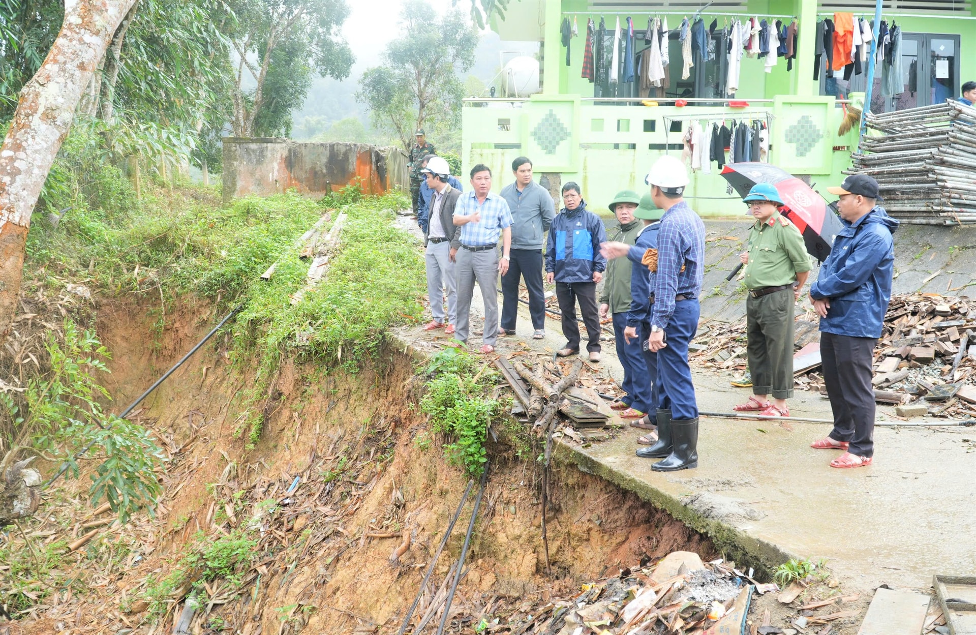 Hiện trường điểm sạt lở khu vực Trường Phổ thông dân tộc nội trú THCS Tây Giang. Ảnh: ĐĂNG NGUYÊN
