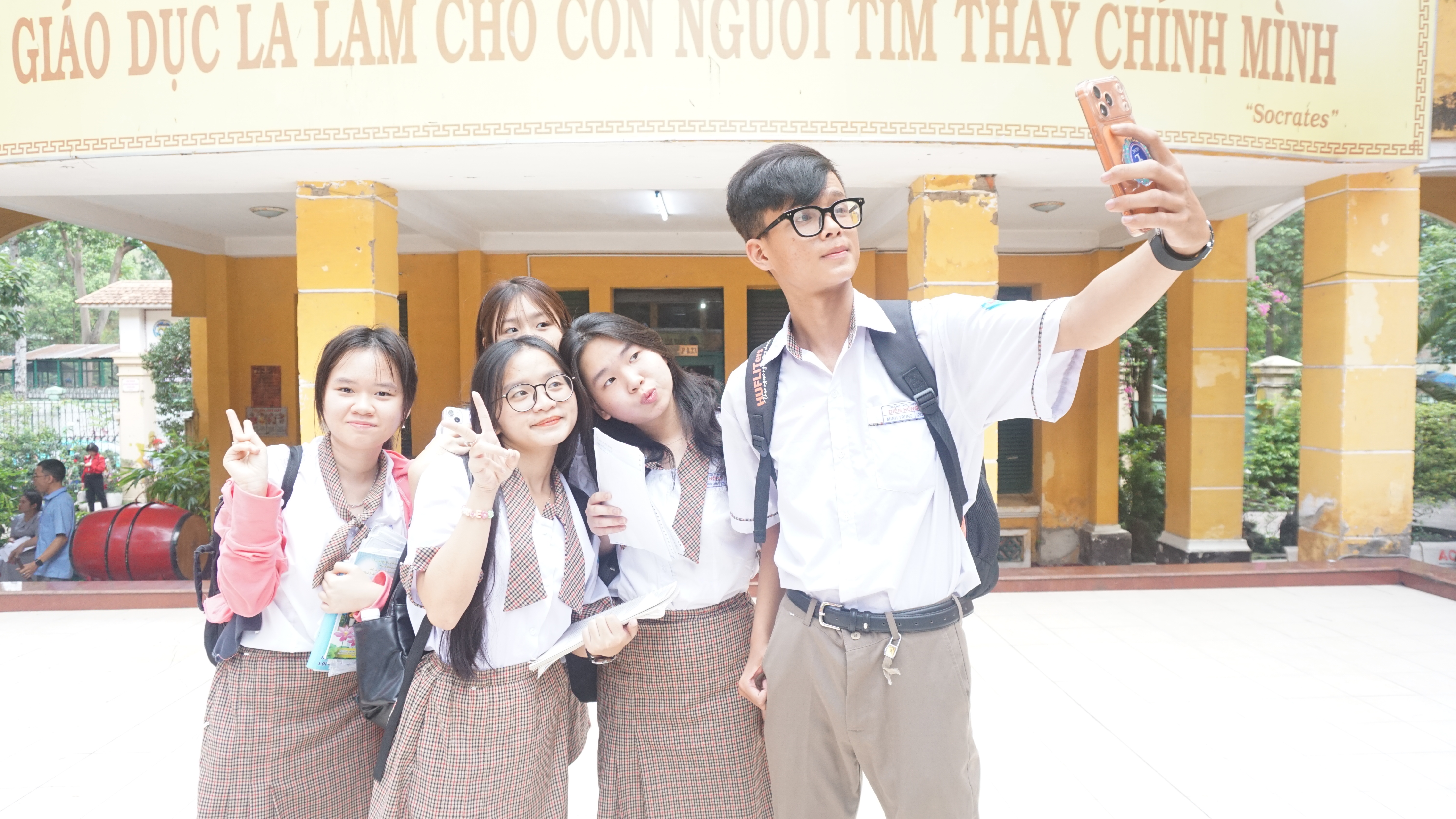 Tại Trường THPT Trưng Vương, phường Sài Gòn, từ sáng sớm nhiều học sinh đã có mặt.