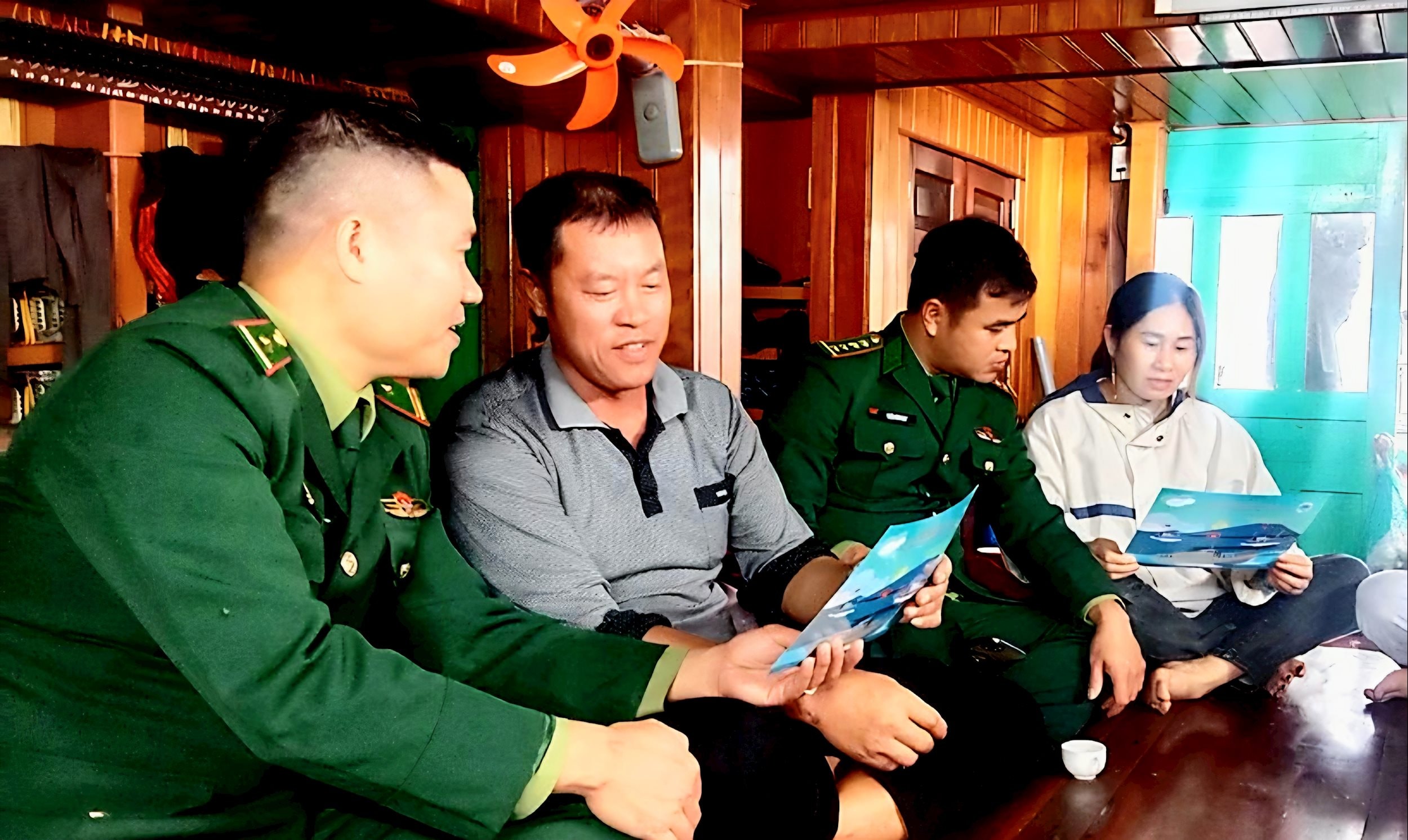 Bộ đội Biên phòng Hà Tĩnh tuyên truyền phổ biến Luật Biên phòng Việt Nam cho ngư dân. Ảnh: Đình Hùng