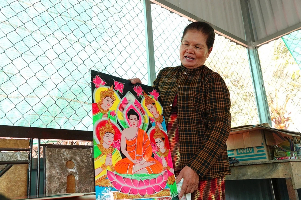Bà con Khmer theo tín ngưỡng Phật giáo nên các sản phẩm tranh kiếng đều vẽ Phật, chùa, hướng thiện. Nghề vẽ tranh trên kiếng là một nghề truyền thống lâu năm của bà con dân tộc Khmer, trước đây, mỗi nhà dân đều mong muốn có một bức tranh trang trí để nhà của mình thêm khang trang. Xuất phát từ nhu cầu đó nên đã hình thành nghề vẽ tranh trên kiếng để phục vụ bà con”.