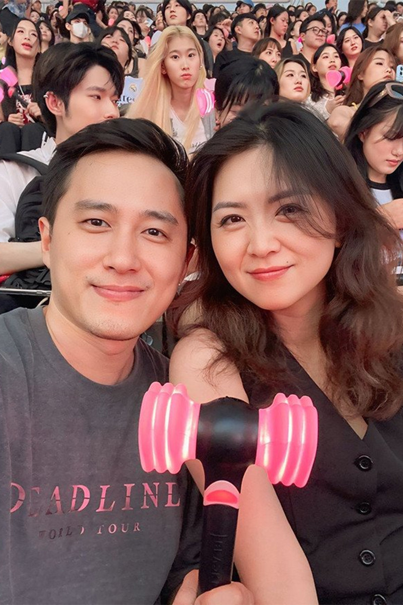 Vợ chồng MC Phí Linh và BTV Lê Hoàng Linh.