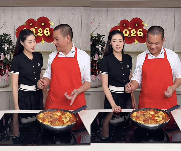 Mới đây, Khánh Vân chia sẻ một đoạn clip ngắn ghi lại khoảnh khắc chồng cô tự tay vào bếp nấu ăn cho vợ. Trong video, ông xã của nàng hậu tỉ mỉ chuẩn bị từng công đoạn, từ sơ chế nguyên liệu đến kho nồi thịt kho trứng quen thuộc. Chứng kiến thành quả, Khánh Vân hài hước viết: “Nhìn nồi thịt kho trứng anh Long nấu là Vân đã thấy Tết rồi!”.