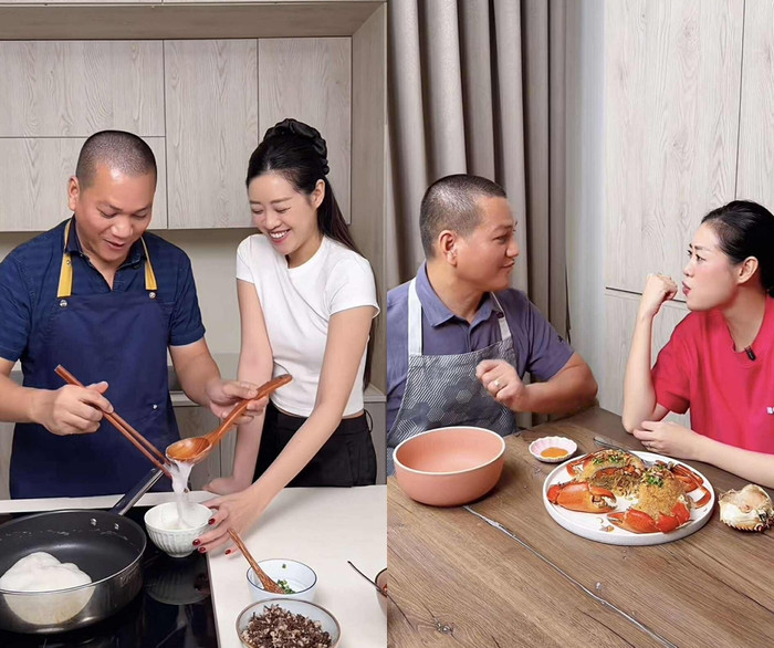 Không chỉ dừng lại ở món thịt kho trứng, thời gian gần đây, Khánh Vân thường xuyên đăng tải những khoảnh khắc đời thường khi chồng vào bếp nấu nhiều món ngon đãi vợ như xôi cua, bánh đúc... Hình ảnh chồng của nàng hậu tập trung nấu nướng trong gian bếp khiến nhiều khán giả bất ngờ, bởi anh vốn được biết đến là người kín tiếng, ít xuất hiện trước truyền thông.