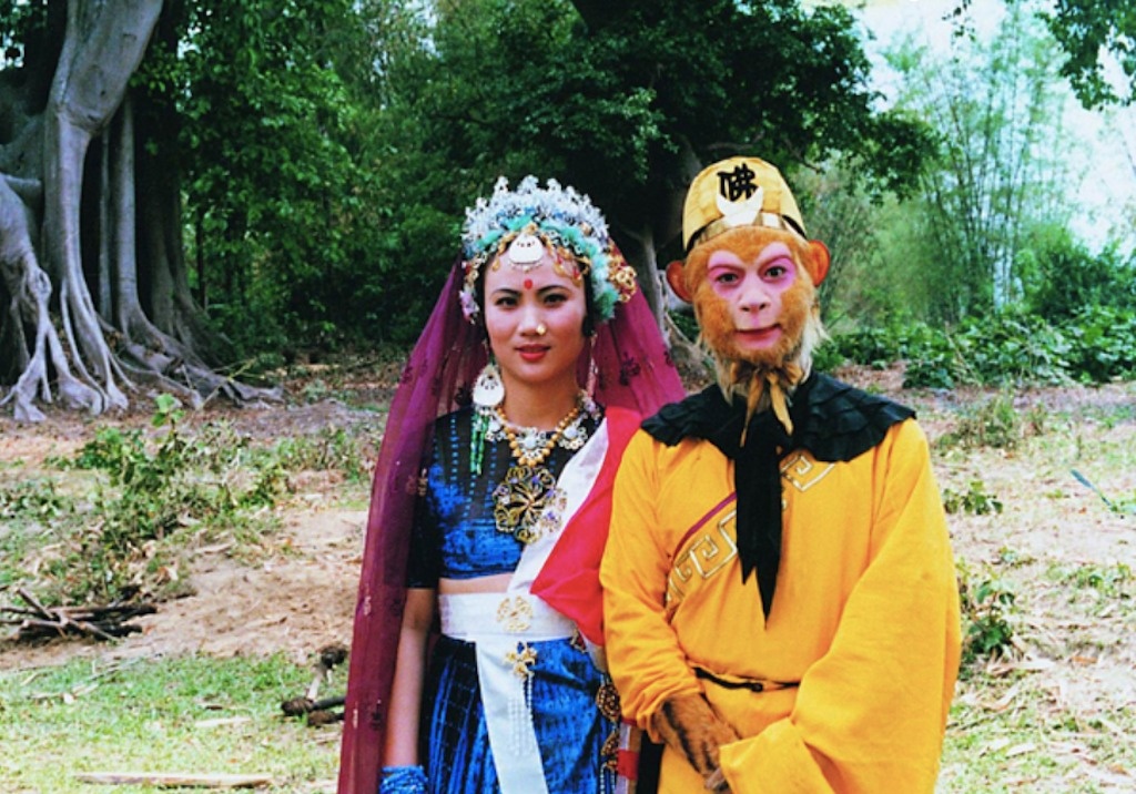 Lục Tiểu Linh Đồng và Vu Hồng trên phim trường Tây Du Ký. Ảnh: Sina.