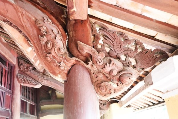 Trang trí đầu rồng, chim phượng trên bẩy hiên đình. Ảnh: Minh Khuê