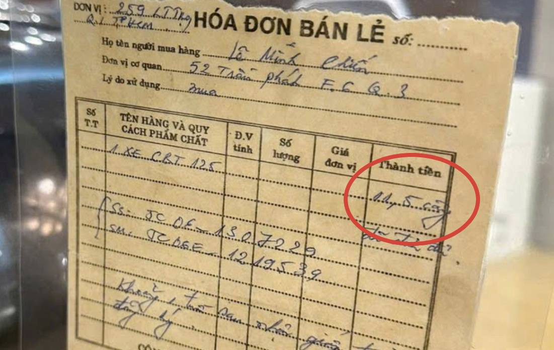 "Năm 1993, chính chủ ở Sài Gòn phải bỏ ra đến 11,5 cây vàng để mua chiếc xe này. Hóa đơn mua bán hiện vẫn được giữ cho đến ngày nay và tôi ép plastic treo luôn trên xe", anh Tú kể.