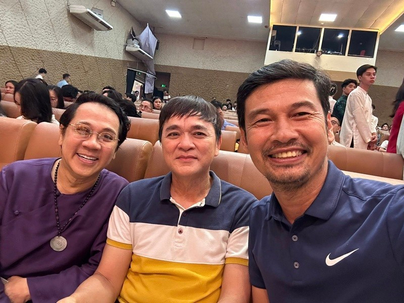 Các nghệ sĩ: Thành Lộc, Quốc Thảo và Tiết Cương cũng dự lễ giỗ Tổ nghề sân khấu. Ảnh: FB Tiết Cương.
