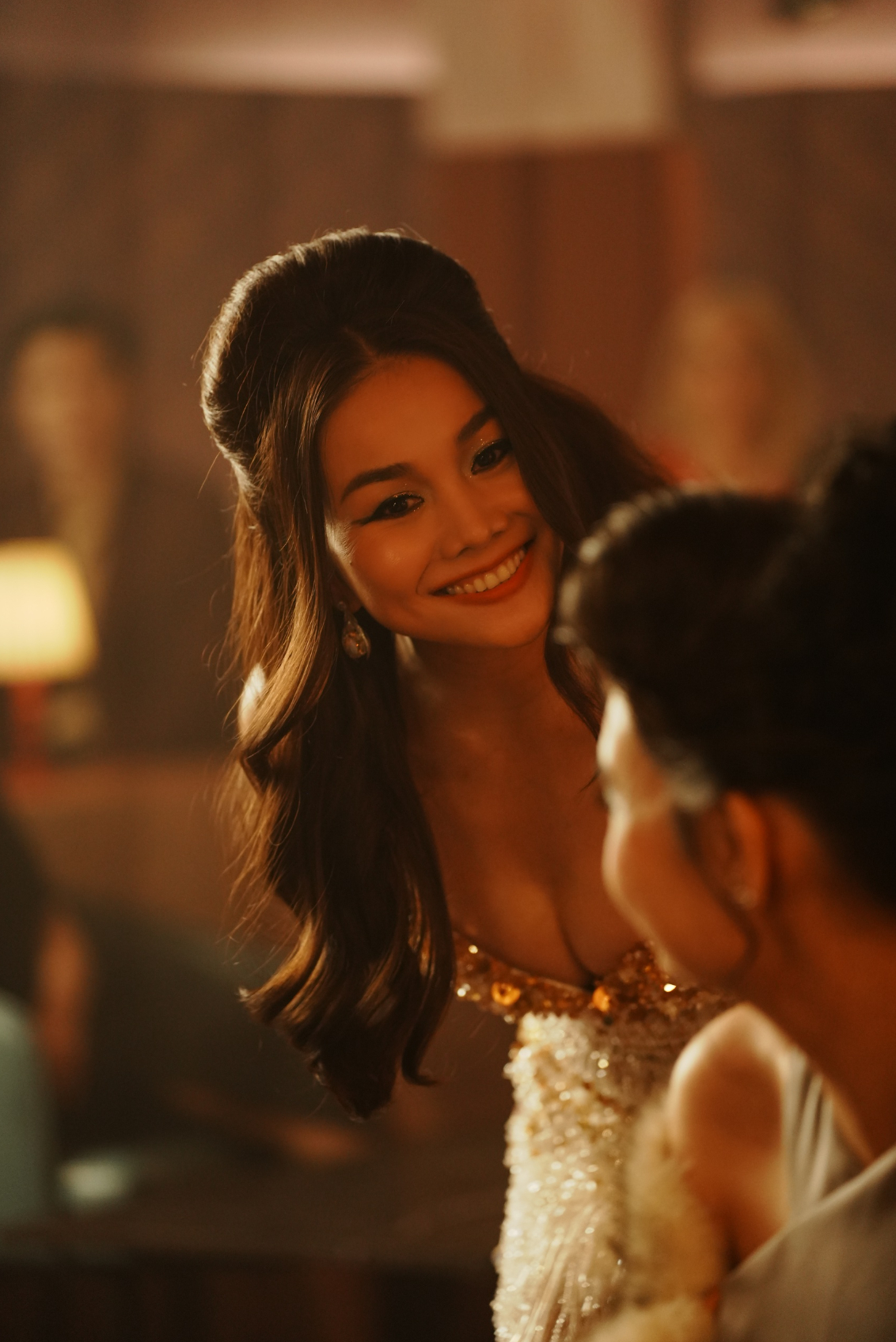 Teaser trailer còn được cộng hưởng bởi loạt thoại sắc lẹm, lạnh lùng "Đệ nhất thì cũng chỉ là đệ nhất" đã đủ phơi bày bản chất phân tầng ngầm. Đó không còn là sự cạnh tranh đơn thuần, mà là cuộc hạ bệ không khoan nhượng. Cuộc chơi nhanh chóng nâng cấp mức độ sát thương, câu "Cầm Thanh đã hết thời rồi" buông nhẹ từ bà Madame Sắc (Hồng Ánh) lại sắc như lưỡi dao, rạch thẳng vào lòng tự trọng của đệ nhất mỹ nhân Cầm Thanh (Thanh Hằng). Hai chữ "hết thời" hóa ra lại thành lời kết án phủi sạch mọi hào quang và giá trị, đẩy cô thành chiếu dưới, bị thời cuộc đẩy lùi.
