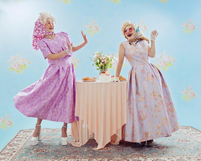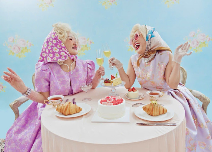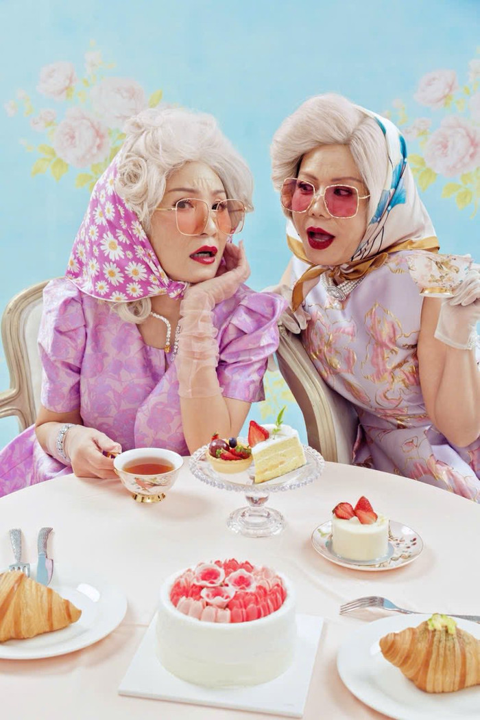 Bộ ảnh được thực hiện với tông màu tím pastel ngọt ngào, gợi cảm giác như bước ra từ thế giới cổ tích. Hồng Đào và Việt Hương diện những chiếc váy bồng bềnh, kết hợp phụ kiện cầu kỳ, thể hiện thần thái vừa sang trọng vừa hài hước. Không chỉ tạo dáng tự tin, cả hai còn tung hứng với nhau đầy tự nhiên, khiến người xem bật cười vì độ chịu chơi của hai chị đẹp.