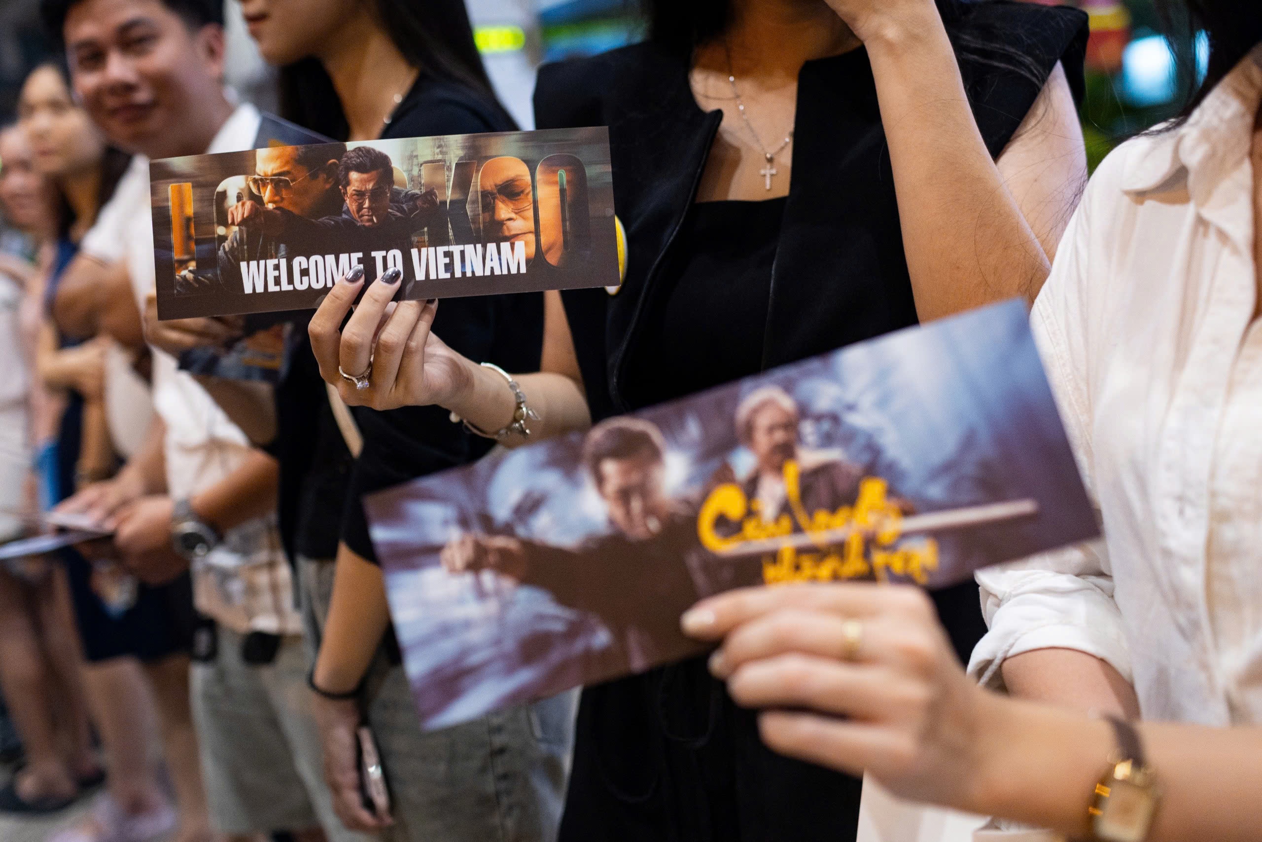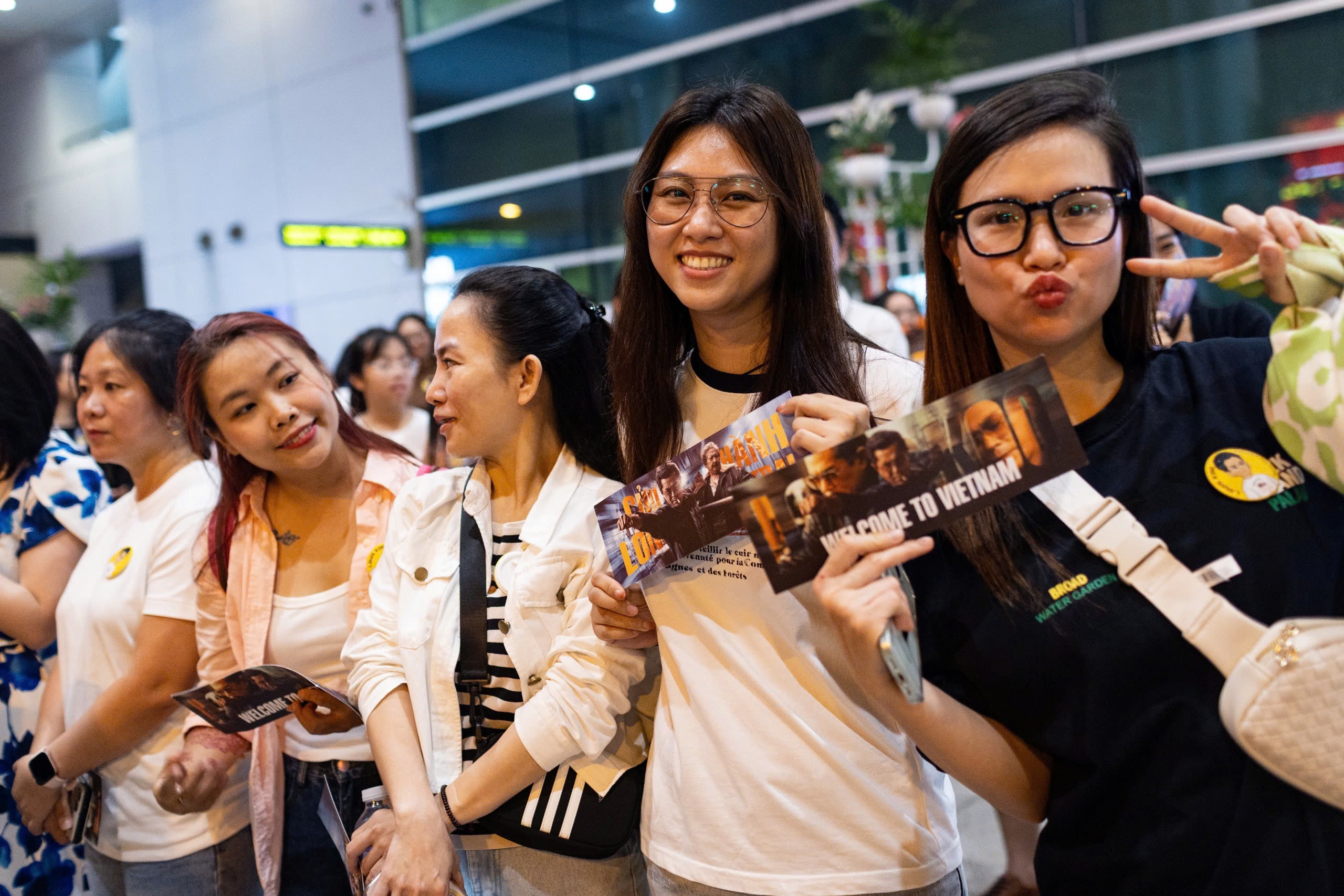 Fan Việt mang theo banner, hoa và quà để tặng thần tượng. Bạn Lầu Quế Hảo (thứ hai từ trái qua) chia sẻ cô theo dõi và hâm mộ tài tử hơn 20 năm, từ sau bộ phim Mỹ vị thiên vương. Khi biết thông tin Cổ Thiên Lạc đến TP.HCM, cô đã theo dõi kỹ lịch trình và có mặt từ sớm ở sân bay để chào đón anh.