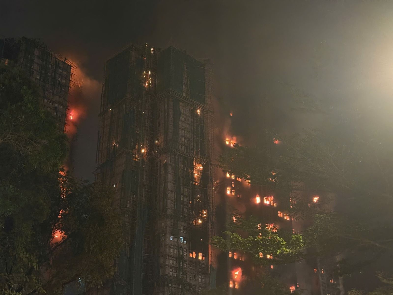 Hiện trường vụ cháy chung cư tại quận Tai Po.