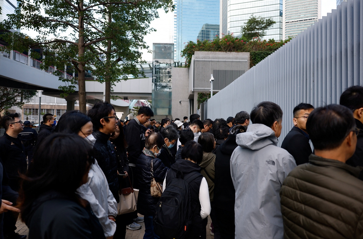 Người dân tập trung bên cạnh Văn phòng Chính quyền đặc khu Hong Kong sau buổi lễ tưởng niệm các nạn nhân thiệt mạng trong vụ cháy khu chung cư Wang Fuk Court, ngày 29/11/2025. Ảnh: Reuters