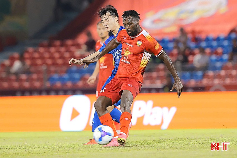 Phút 32, tỷ số trận đấu được mở, từ pha phản công nhanh, Charles Atshimene bật cao đánh đầu đưa Hồng Lĩnh Hà Tĩnh vươn lên dẫn trước. Đây cũng là tỷ số cuối cùng của hiệp 1.