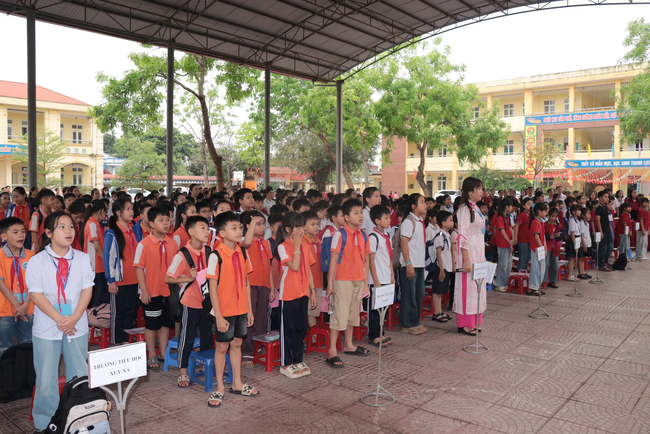 237 học sinh tiêu biểu khối 3, 4, 5 đến từ 8 trường trên địa bàn xã tham gia giao lưu. Ảnh: Nguyễn Cường