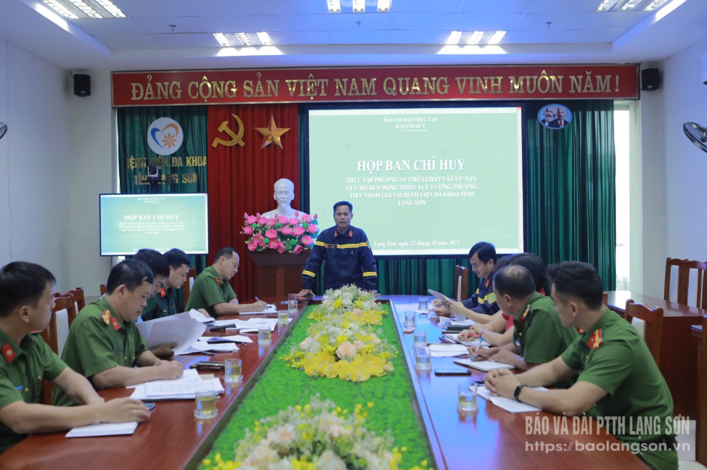 Ngay sau khi kết thúc cuộc họp, các thành viên Ban Chỉ huy đã kiểm tra thực tế hiện trường diễn ra buổi hợp luyện, tổng duyệt thực tập phương án CC&CNCH huy động nhiều lực lượng phương tiện tham gia tại Bệnh viện Đa khoa tỉnh Lạng Sơn theo kế hoạch của UBND tỉnh đã đề ra.