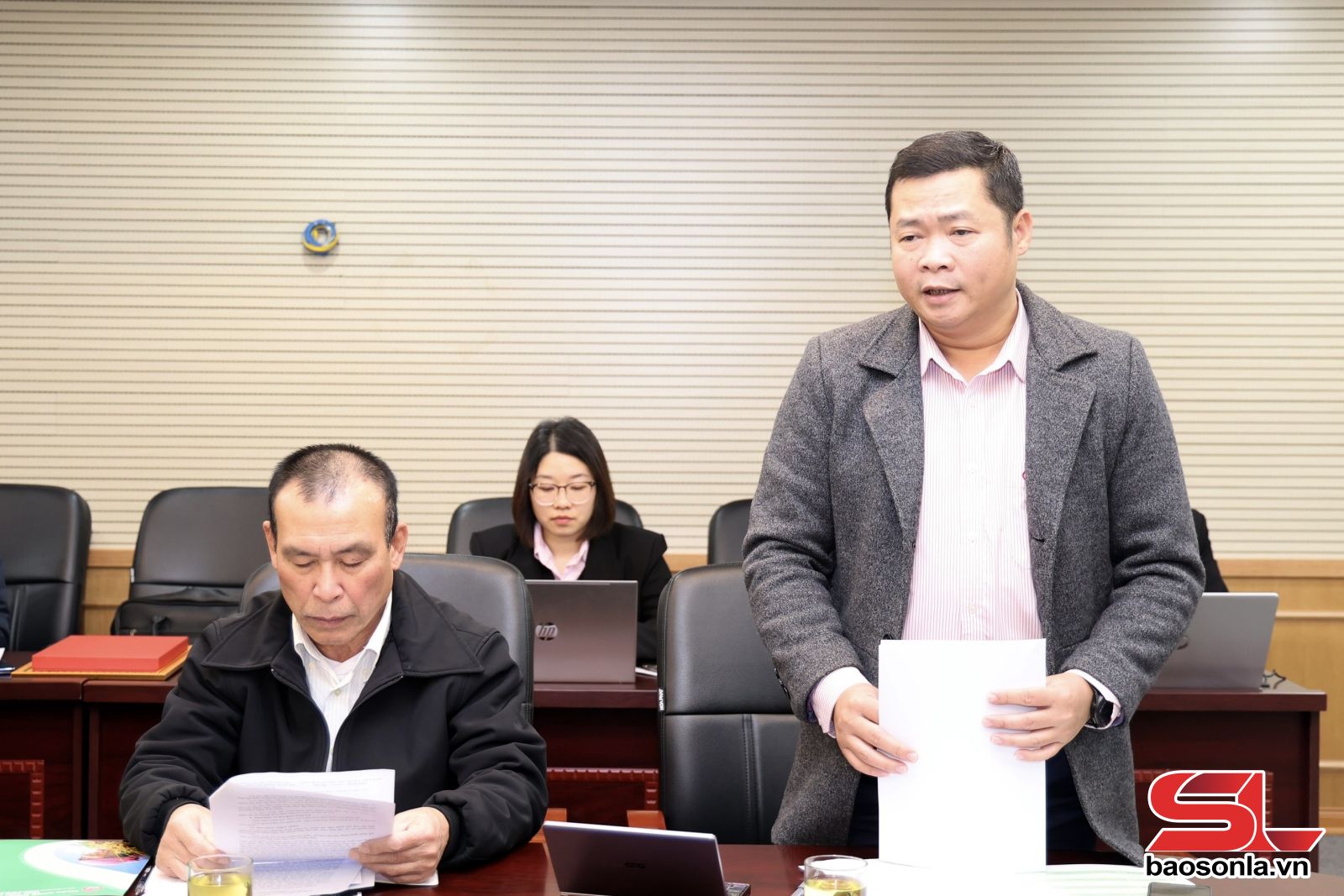 Đại diện Ngân hàng chính sách xã hội tỉnh phát biểu tại cuộc họp