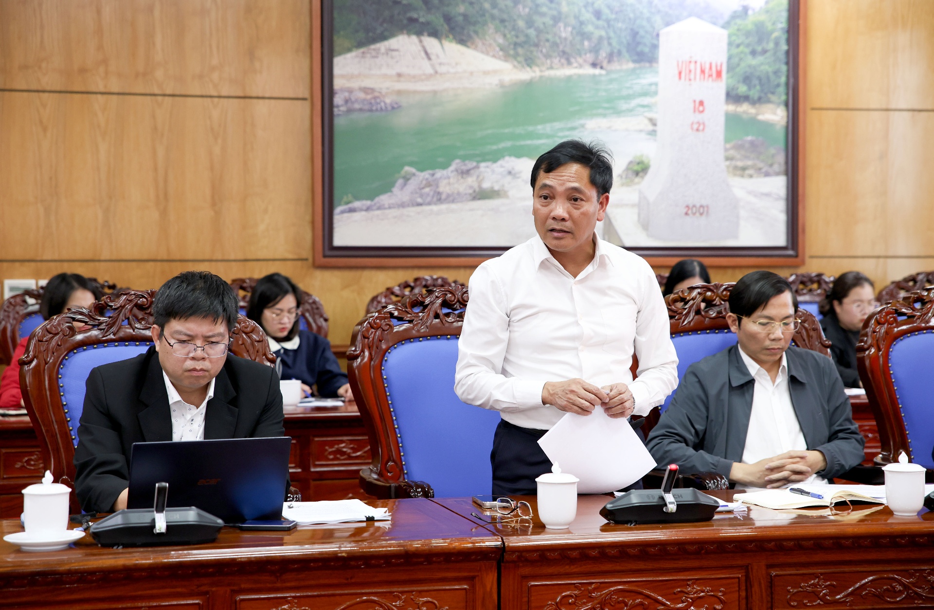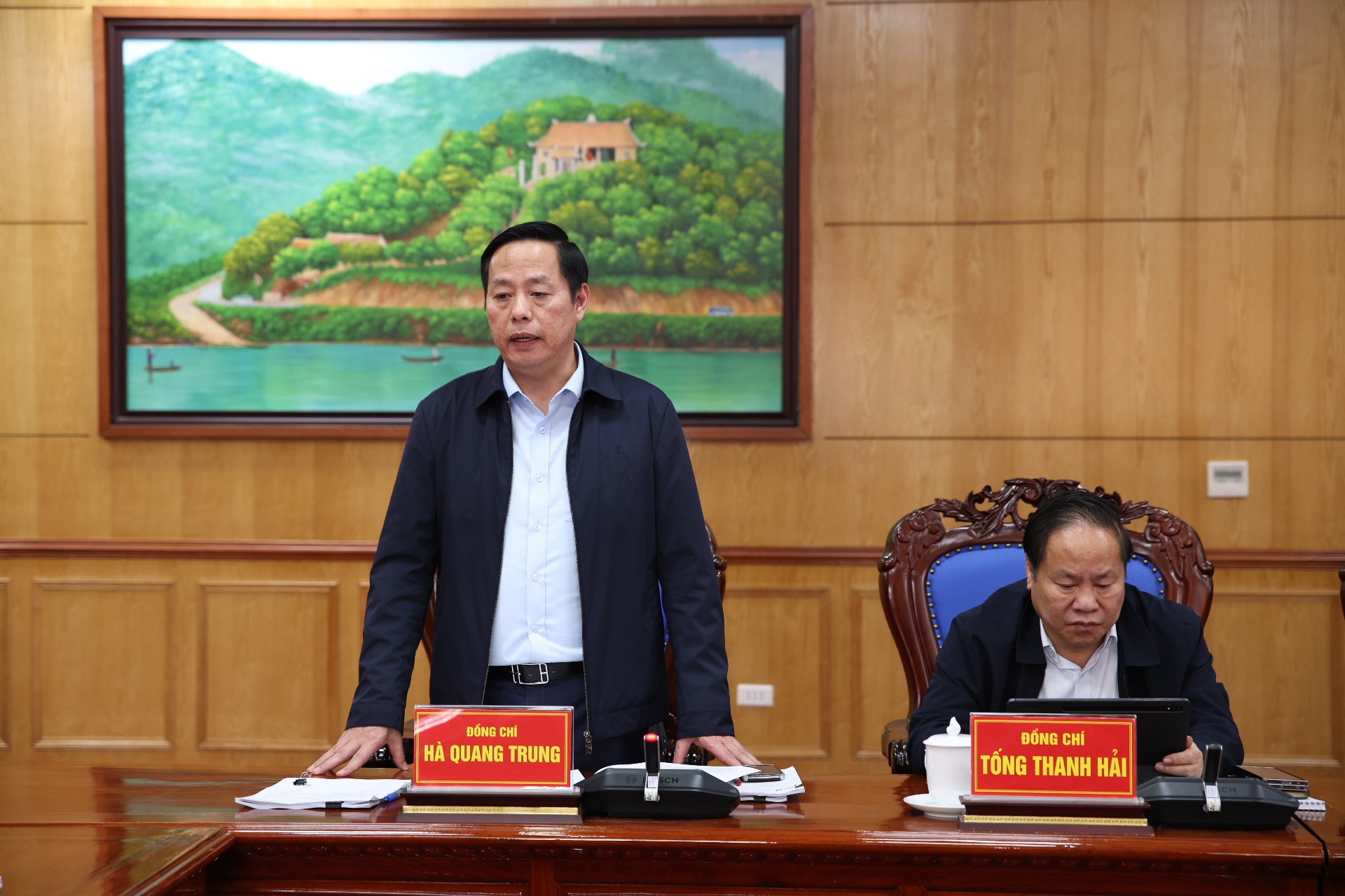 Đồng chí Hà Quang Trung - Phó Bí thư Tỉnh ủy, Chủ tịch UBND tỉnh phát biểu tại cuộc họp.