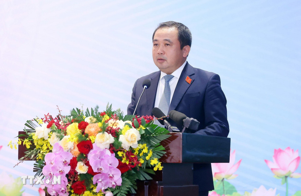 Đồng chí Trần Văn Sơn, Ủy viên Trung ương Đảng, Bộ trưởng, Chủ nhiệm Văn phòng Chính phủ phát biểu. (Ảnh: Phạm Kiên/TTXVN)