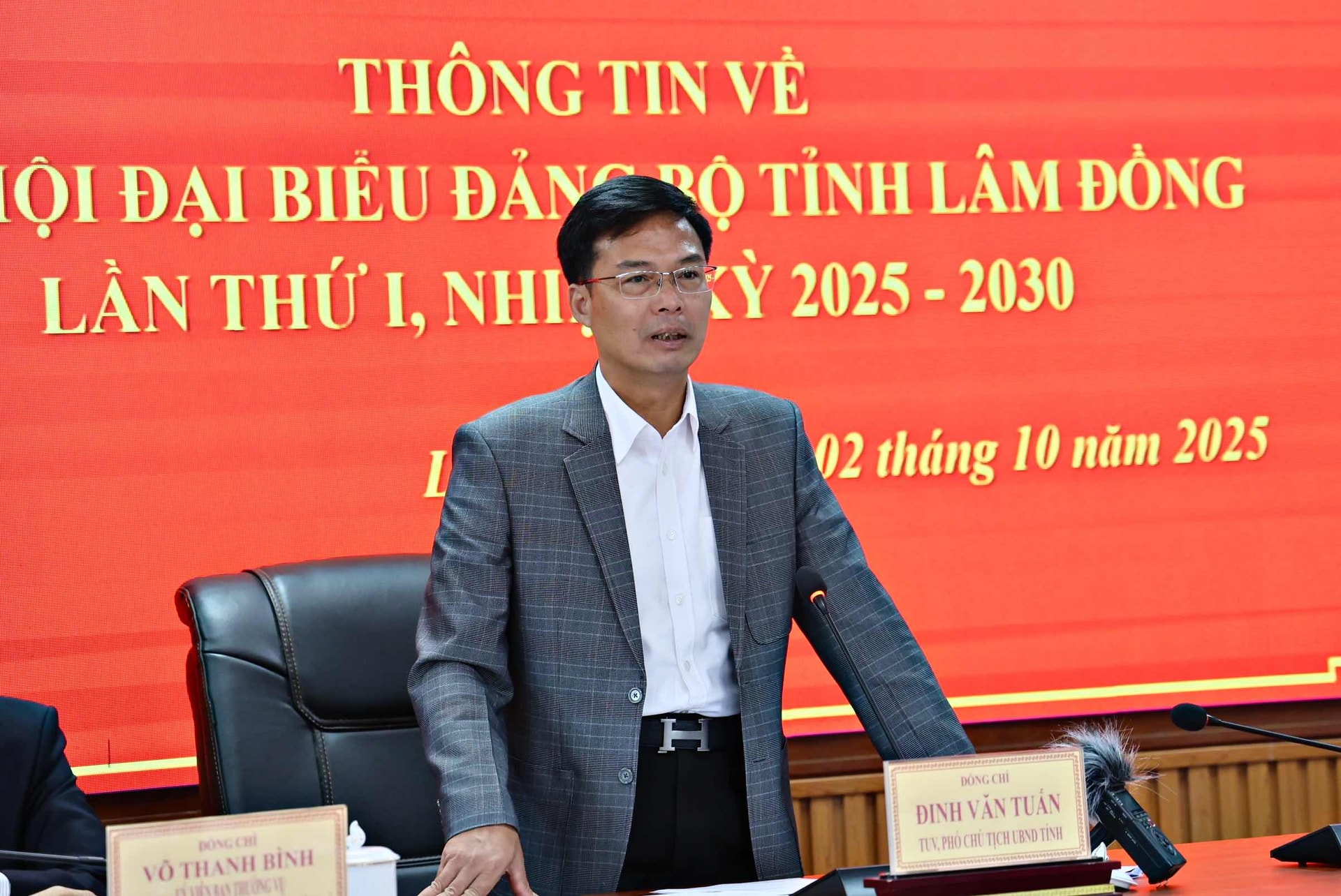 Đồng chí Nguyễn Khắc Bình, Ủy viên Ban Thường vụ Tỉnh ủy, Chánh Văn phòng Tỉnh ủy thông tin về quá trình chuẩn bị văn kiện Đại hội đại biểu Đảng bộ tỉnh Lâm Đồng lần thứ I, nhiệm kỳ 2025 - 2030