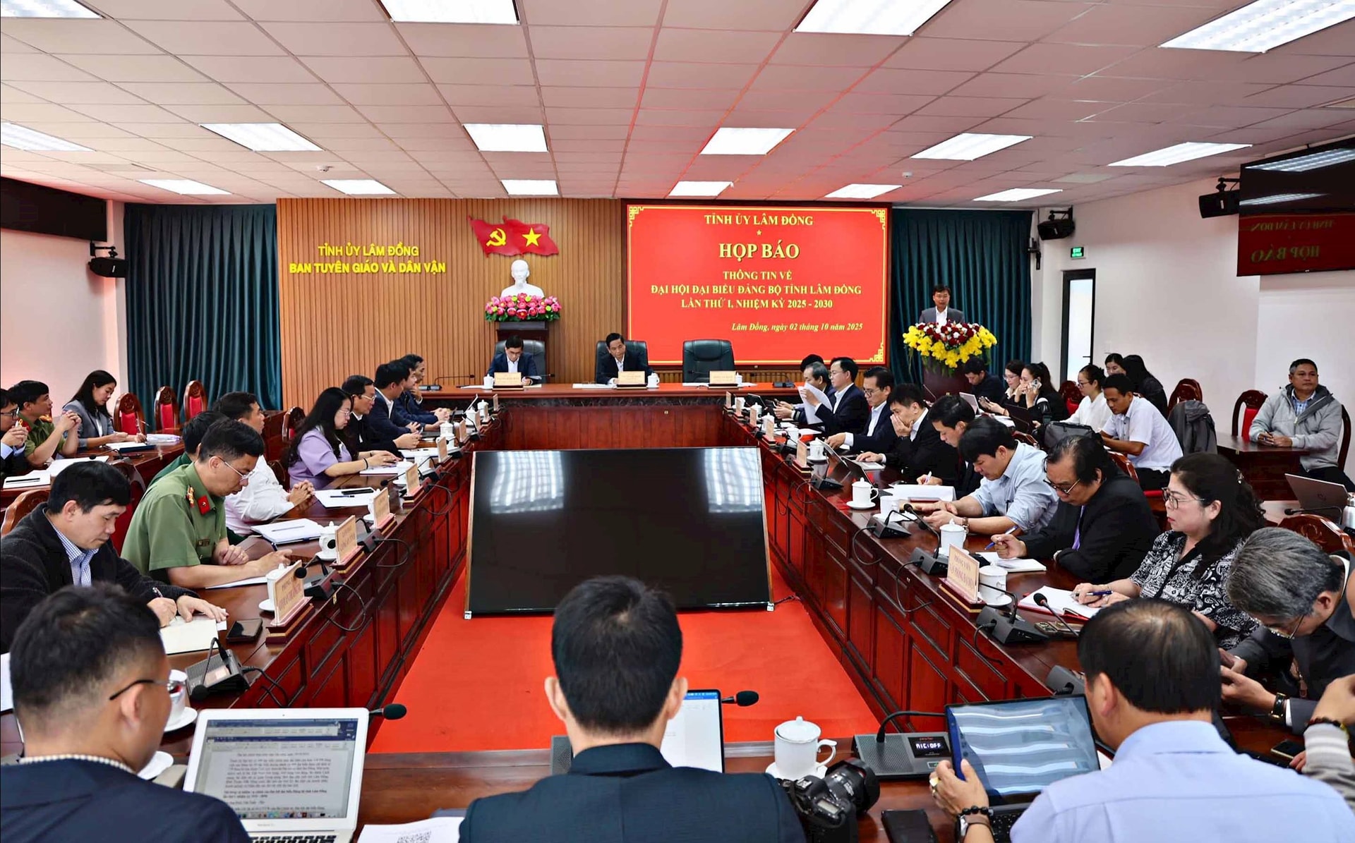 Quang cảnh buổi họp báo thông tin về Đại hội đại biểu Đảng bộ tỉnh Lâm Đồng lần thứ I, nhiệm kỳ 2025-2030