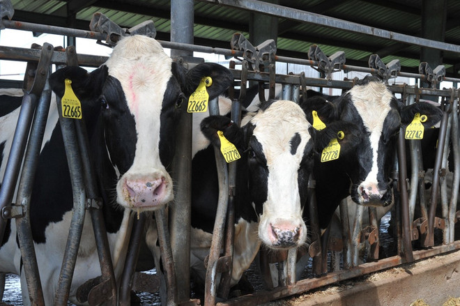 Bò sữa được nuôi tại trang trại ở Plymouth, bang Indiana, Mỹ. (Ảnh: AFP/TTXVN)