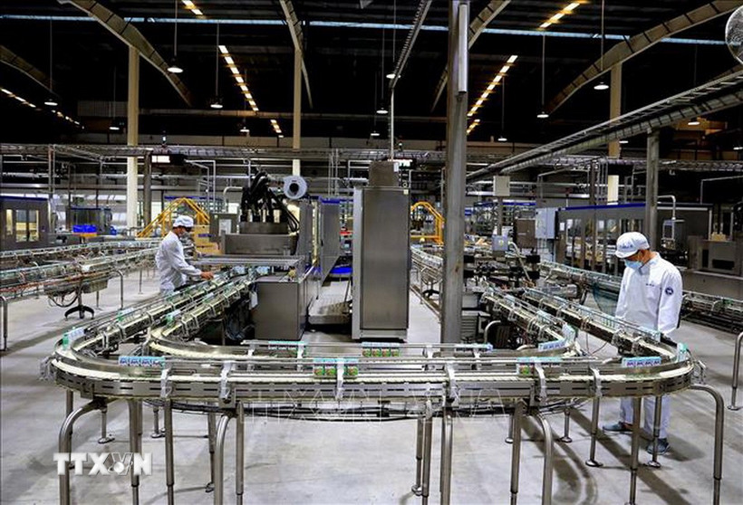 Dây chuyền sản xuất sữa tươi Vinamilk từ trang trại xanh, thân thiện với môi trường. (Ảnh: Hồng Đạt/TTXVN)