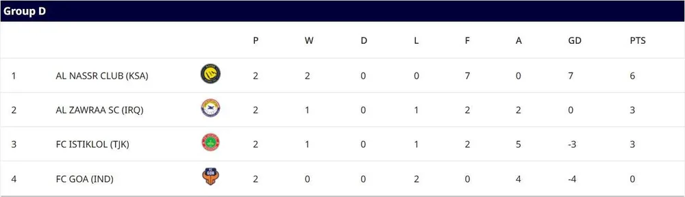 CLB Goa của Ấn Độ rất yếu, sau hai lượt trận toàn thua và đứng chót bảng D. Goa thua Istiklol (Turkmenistan) 0-2 và Al Zawraa (Iraq) 0-2 ngay trên sân nhà.